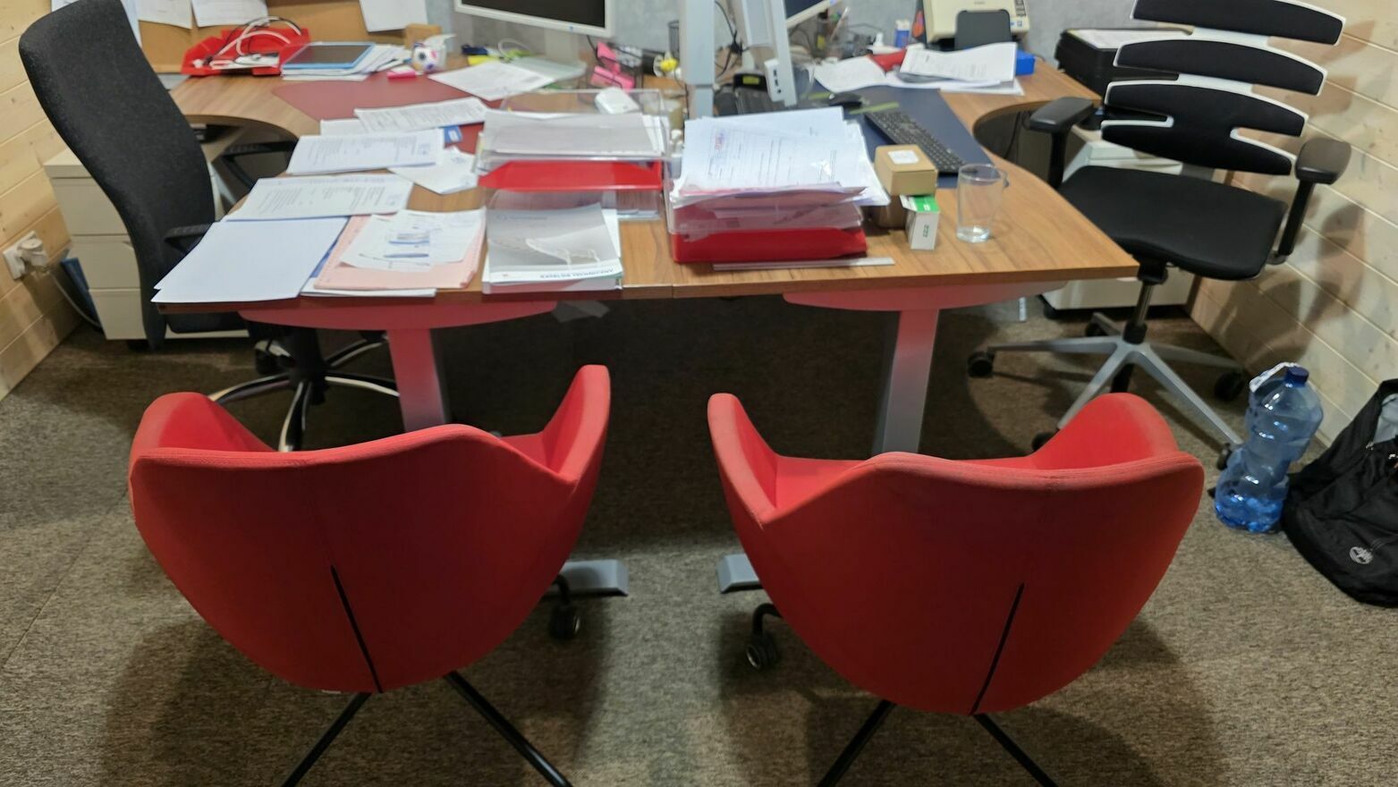 1 x stół konferencyjny 120 x 225 cm, 2 x stół konferencyjny 120x 150 cm, 6x krzesła czerwone, 4x biurko narożne typu L 160x120cm, 2x szafa odzieżowa szer.80 cm , 2 x szafa na dokumenty szer.160 xcm, wys.190cm. Stan bdbSprawdź zainteresowanie tym ogłoszeniem