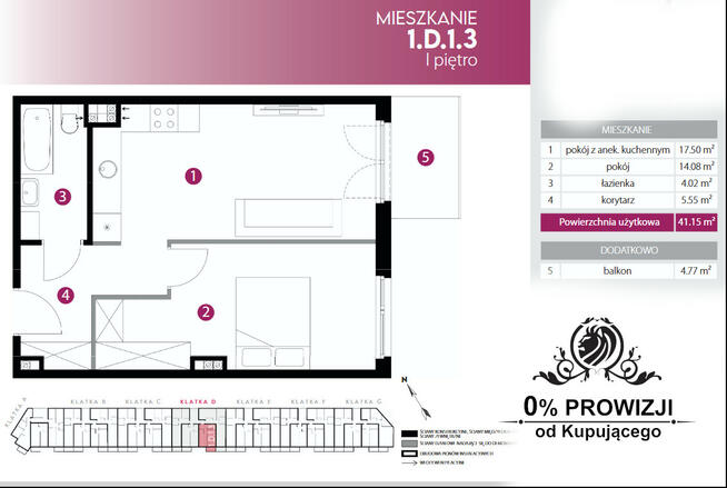 Apartament 2 pokojowy o powierzchni 41,96m2 położony jest na 1 piętrze w 4 piętrowym apartamentowcu z windą. Układ ...
