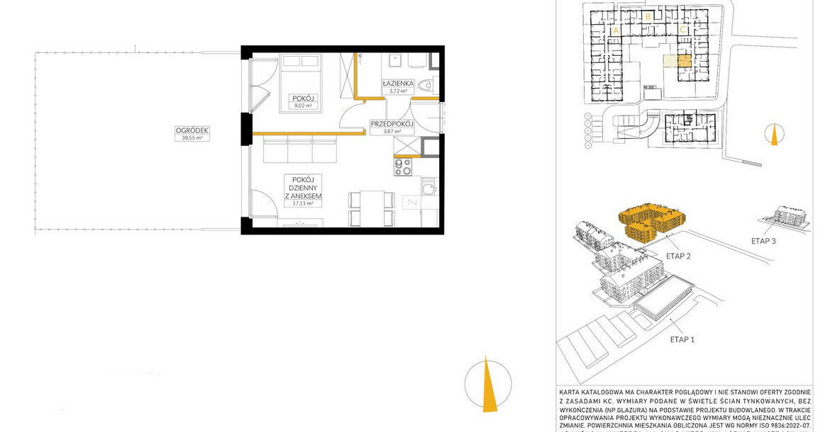 Maślice to dzielnica wyróżniająca się na mapie miasta licznymi terenami zielonymi, bliskością rzeki i lasu. Jest to miejsce doskonałe do rekreacji i odpoczynku, które z pewnością otworzy przez mieszkańcami szereg możliwości spędzania wolnego czasu z rodziną i przyjaciółmi bez konieczności jechania do centrum. Na osiedlu pojawi się wszystko to, co istotne w codziennym życiu mieszkańców – ławki do odpoczynku na świeżym powietrzu, miejsca postojowe, plac zabaw dla dzieci. Wszystko to w prostej, ponadczasowej stylistyce – zarówno funkcjonalnej jak estetycznej. Dotyczy to również projektu klatek schodowych, który będzie konsekwentną kontynuacją oprawy wizualnej inwestycji, podobnie jak mała architekura wokół budynku.Proponowane mieszkanie ma powierzchnię 33,52m2 i znajduje się na parterze w 3 -piętrowym budynku. Mieszkanie składa się z salonu z aneksem kuchennym o powierzchni 17,11 z salonu wyjście na ogród o powierzchni 38,55m2, sypialni o powierzchni 9,02m2, łazienki o powierzchni 3,72m2 oraz holu o powierzchni 3,67m2.