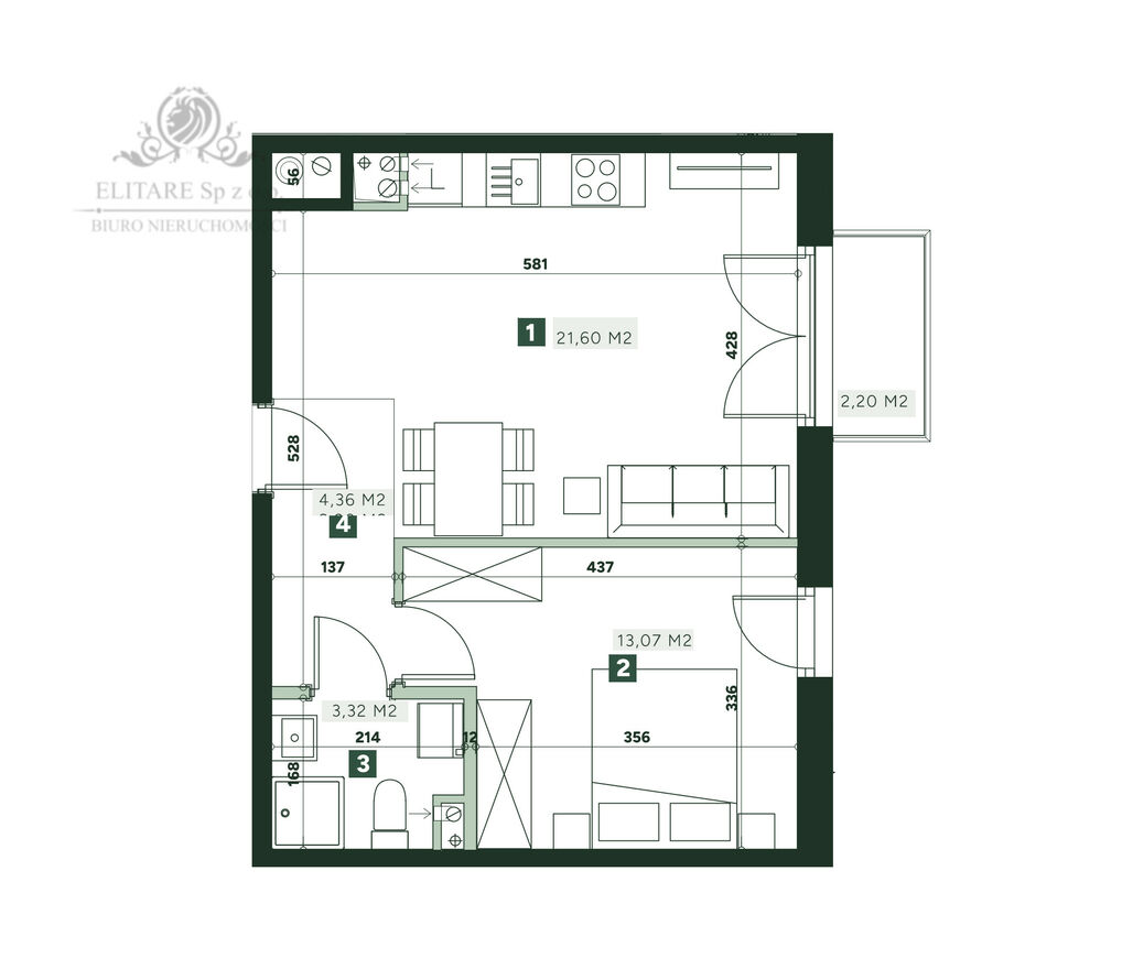 - Liczba pokoi:2 pokoje