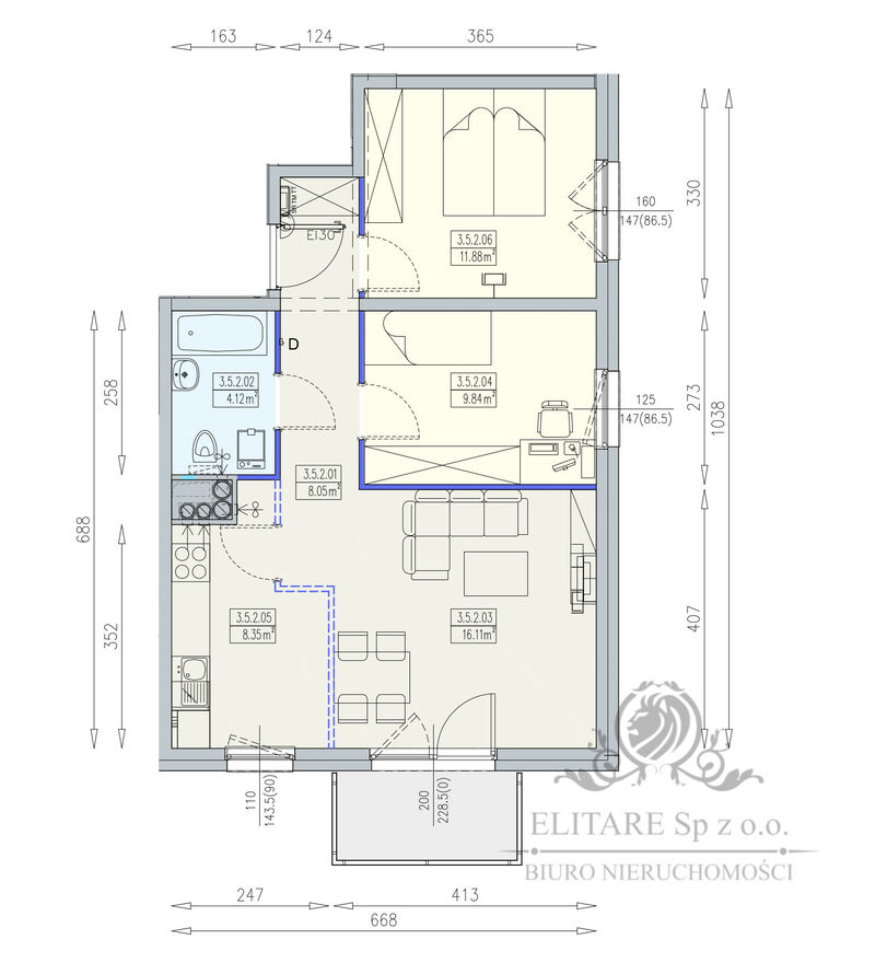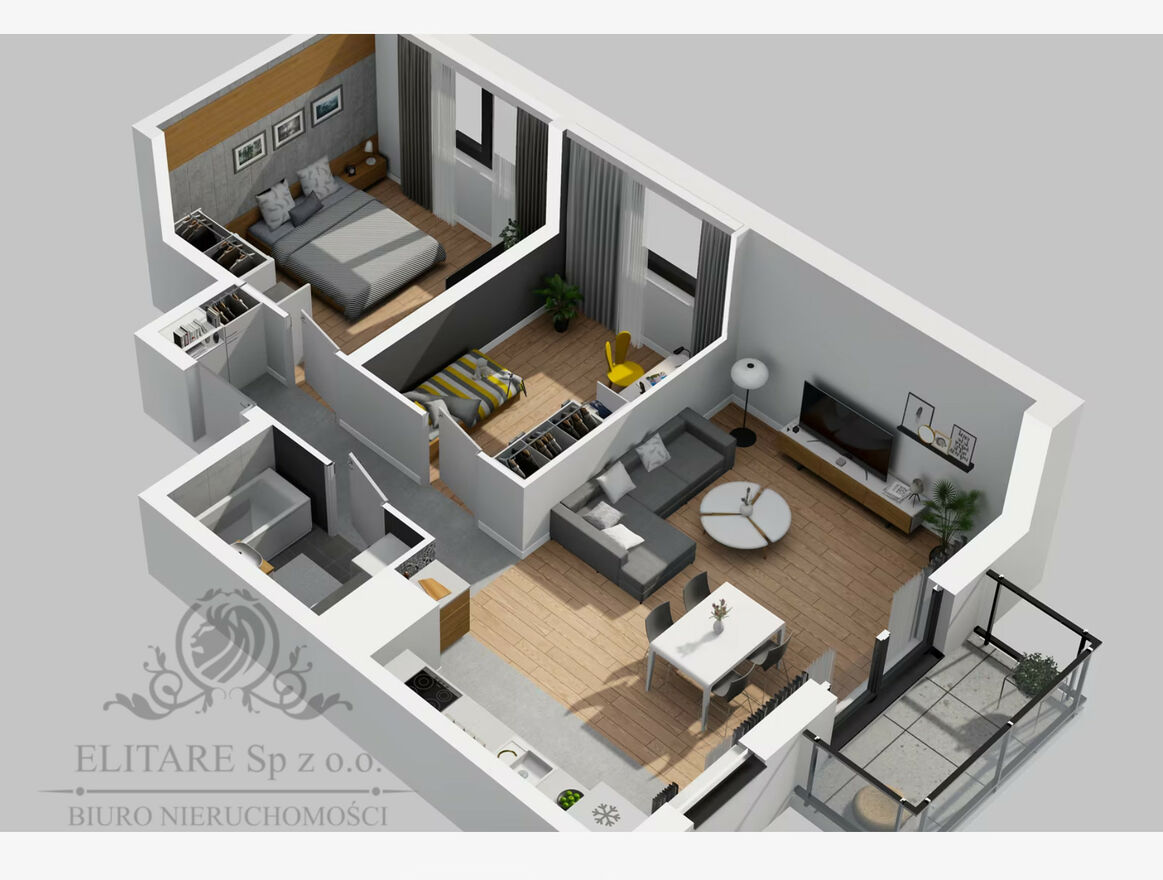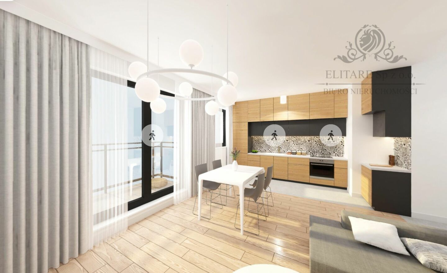Mieszkanie 3 pokojowe z balkonem o powierzchni 58,35m2 z balkonem 3,98m2 . Mieszkanie znajduje się na 5 piętrze w 8 piętrowym apartamentowcu z windą z poziomu garaży. Główna część mieszkania stanowi salon o pow. 16,11m2 z kuchnią otwartą o pow. 8,35m2 - kuchnie można również wydzieli jako osobną, z salonu wyjście na balkon 3,98m2, w mieszkaniu mamy też dwa oddzielne pokoje o pow. 11,88m2 i 9,84m2, mamy też łazienkę z toaletą o pow. 4,12m2 i przedpokój z miejscem na szafę w zabudowie. Ekspozycja okien wschodnia, i północno wschodnia mieszkanie dwustronne, narożne z widokiem z balkonu na ulicę Karkonoską i otwartą przestrzeń. Wysokość mieszkania 2,57m. Wszystkie media miejskie włącznie z ogrzewaniem, w mieszkaniach na wyposażeniu w cenie mamy również się systemem zarządzania inteligentnym mieszkaniem, a w budynku znajdziemy m.in.: dostęp do części wspólnych za pomocą aplikacji w smartfonie, czy zamykane rowerowanie.O bezpieczeństwo osiedla zadba całodobowy monitoring wokół budynku i w hali garażowej.