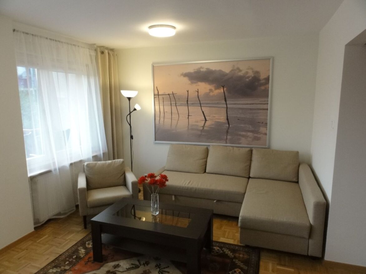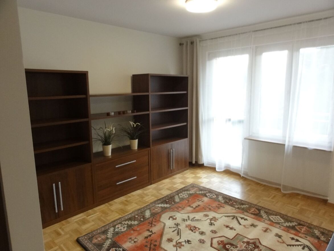 Mieszkanie rozkładowe (dwustronne), 2 pokojowe + tzw. ”trójkąt” który może być traktowany jako dodatkowy pokój, z osobną kuchnią, łazienką i WC oraz balkonem z widokiem na wewnętrzny teren osiedla. W pełni umeblowane - ewentualne doposażenie mieszkania przez właściciela nie stanowi problemu i jest do ustalenia z najemcą. Do dyspozycji jest również dość duża piwnica wyposażona w regały.