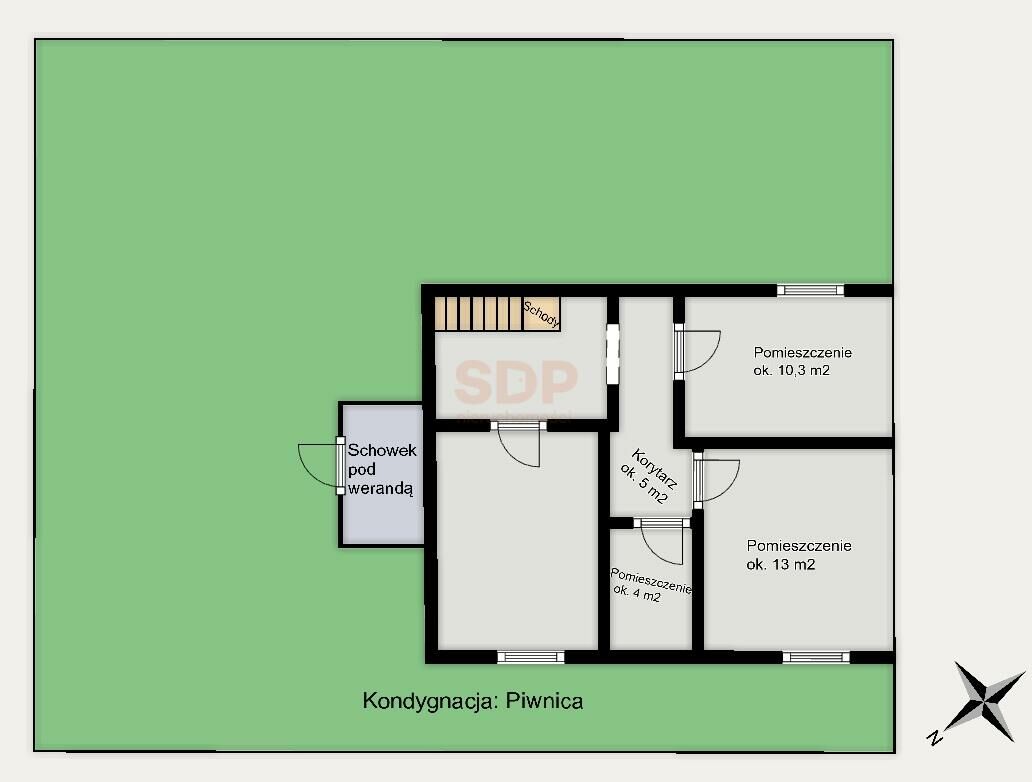 - połowa strychu oraz 3 pomieszczenia piwniczne