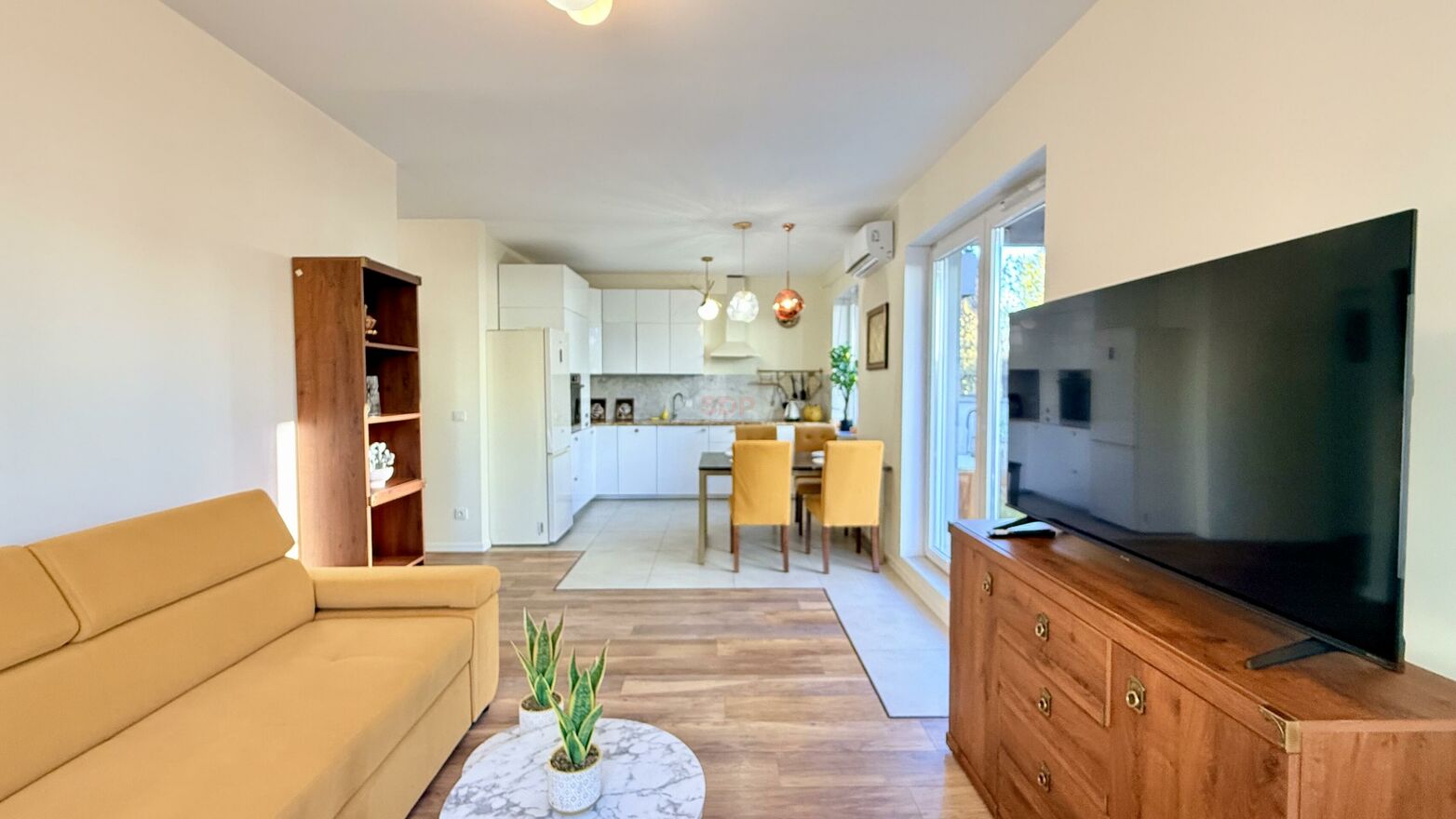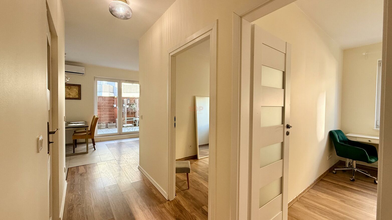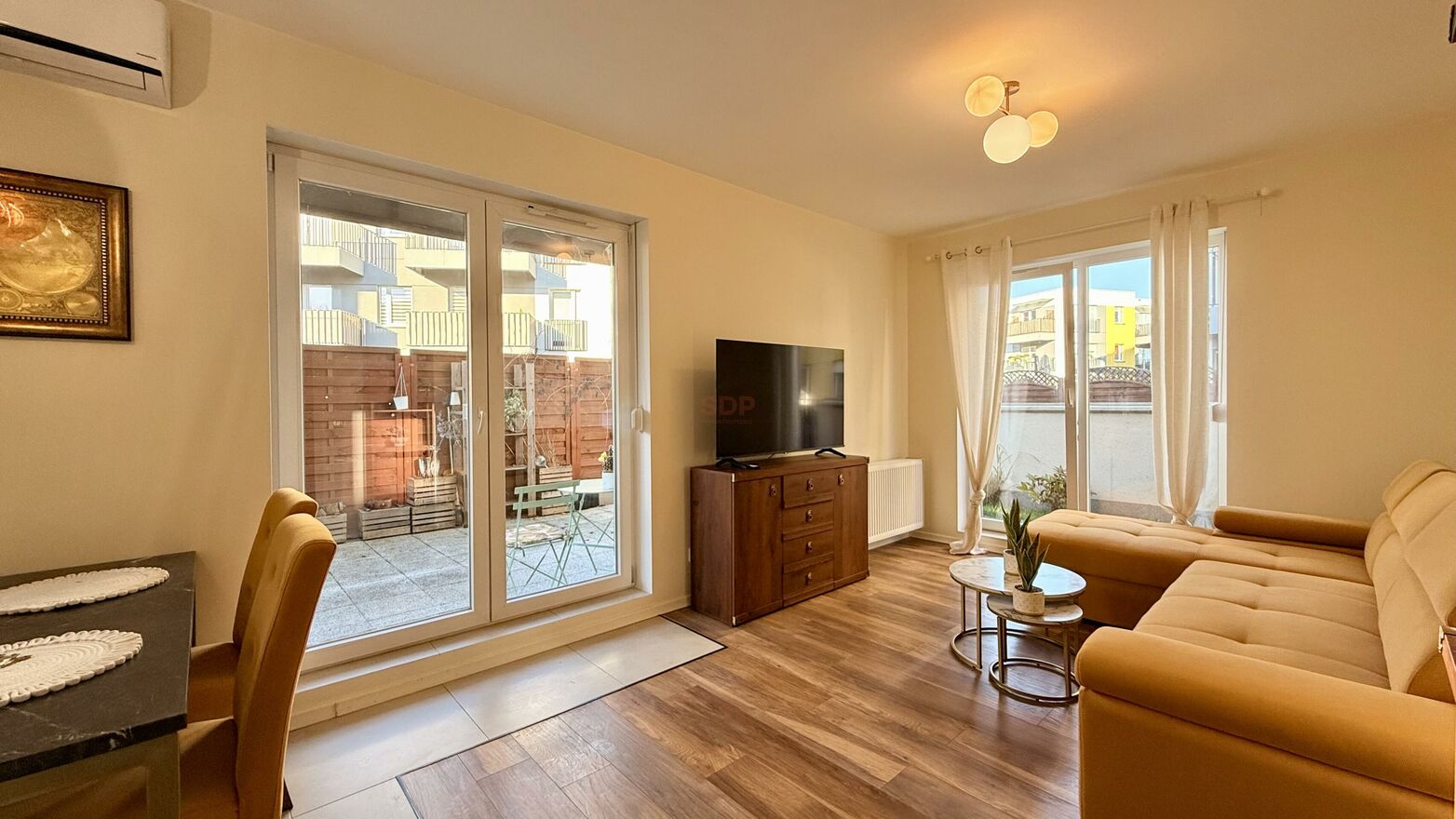 - Pokój z aneksem oraz wyjściem na ogródek