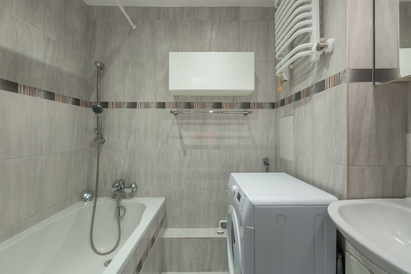 Mieszkanie jest w pełni wyposażone, dużo miejsca do przechowywania. Łazienka wyposażona w wannę oraz pralkę.