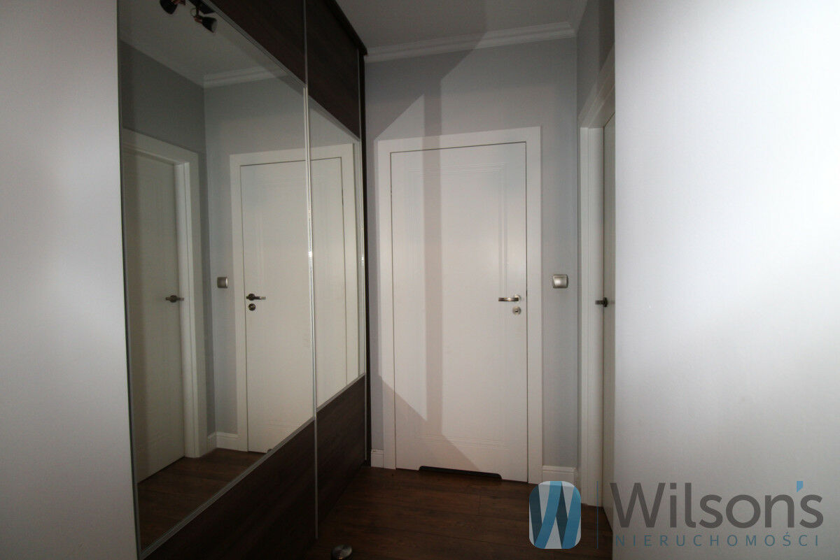 -przedpokój z dużą, zabudowaną szafą z lustrzanymi frontami
