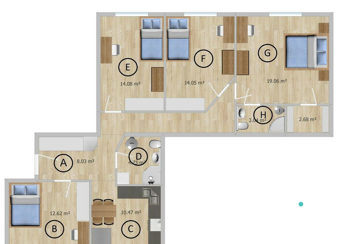 * Dla par i rodzin z dziećmi. Cztery niezależne pokoje, oddzielna kuchnia oraz dwie łazienki gwarantują komfort, prywatność i wygodę codziennego funkcjonowania. To przestrzeń, która pozwala każdemu domownikowi mieć swoje miejsce, a jednocześnie tworzy idealne warunki do wspólnego spędzania czasu.