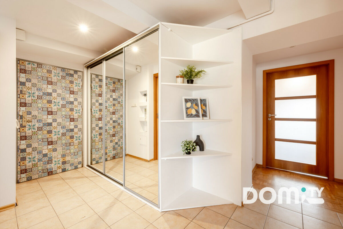 * Powierzchnia i piętro: Mieszkanie o powierzchni 96 m² (powierzchnia liczona po podłodze) usytuowane jest na 5., ostatnim piętrze budynku. Położenie na najwyższej kondygnacji zapewnia większą prywatność, przyjemny widok oraz bardzo dobre doświetlenie wnętrz.