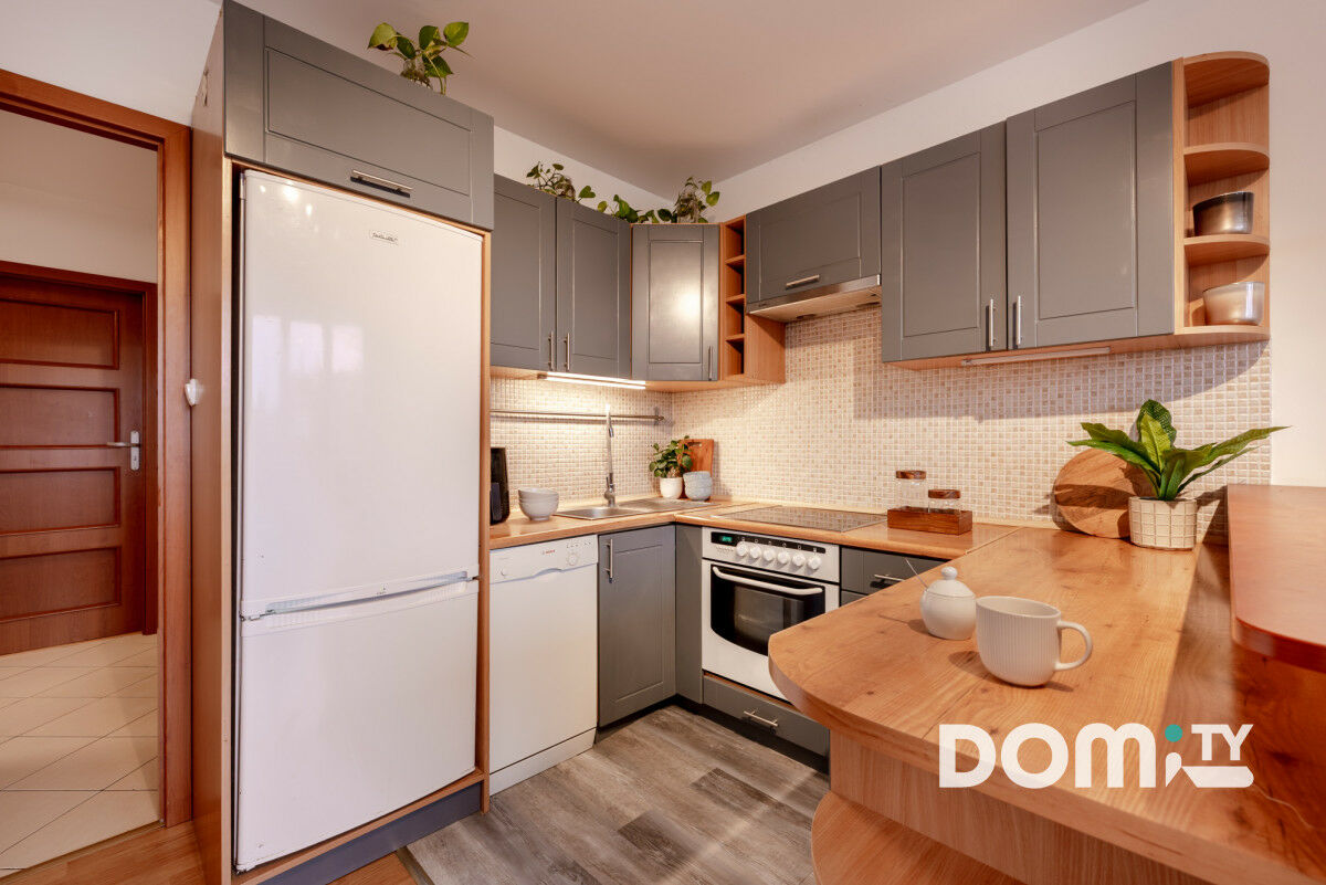 * Ściany, kuchnia: mieszkanie zostało odmalowane w 2019 roku; w kuchni wymieniono podłogę, a fronty mebli zostały odświeżone. Kuchnia wyposażona w kuchenkę, piekarnik, lodówkę, zmywarkę oraz okap.