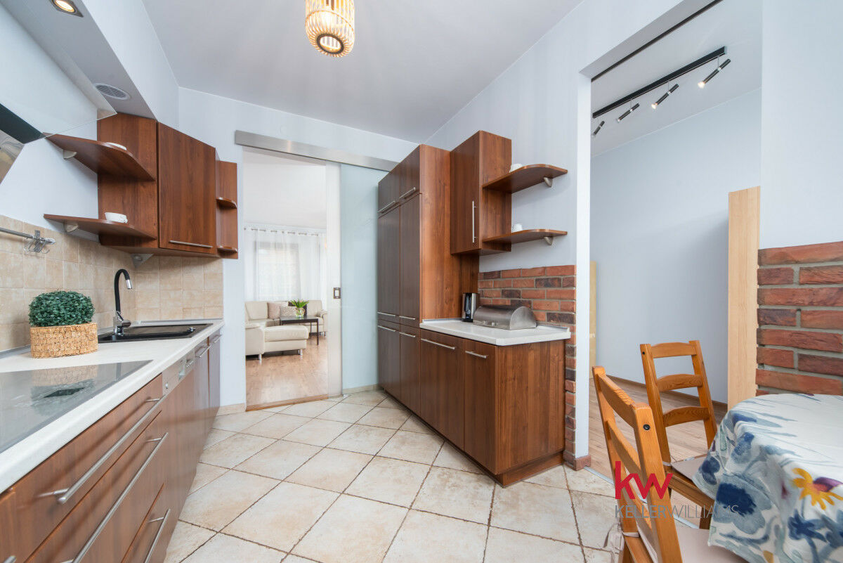 Nieruchomość jest w pełni wyposażona, umeblowana i nie wymaga dodatkowych nakładów inwestycyjnych. Mieszkanie jest gotowe jest do wprowadzenia się przez nowych najemców. Kuchnia jest wyposażona w meble na wymiar oraz sprzętem AGD w zabudowie. Do dyspozycji mamy słoneczny pokój dzienny z jadalną z wyjściem na przestronny balkon. W przedpokoju jest pojemna szafa w zabudowie. Wszystkie sypialnie są wyposażone w meble, natomiast jedna sypialnia posiada duże, małżeńskie łóżko.