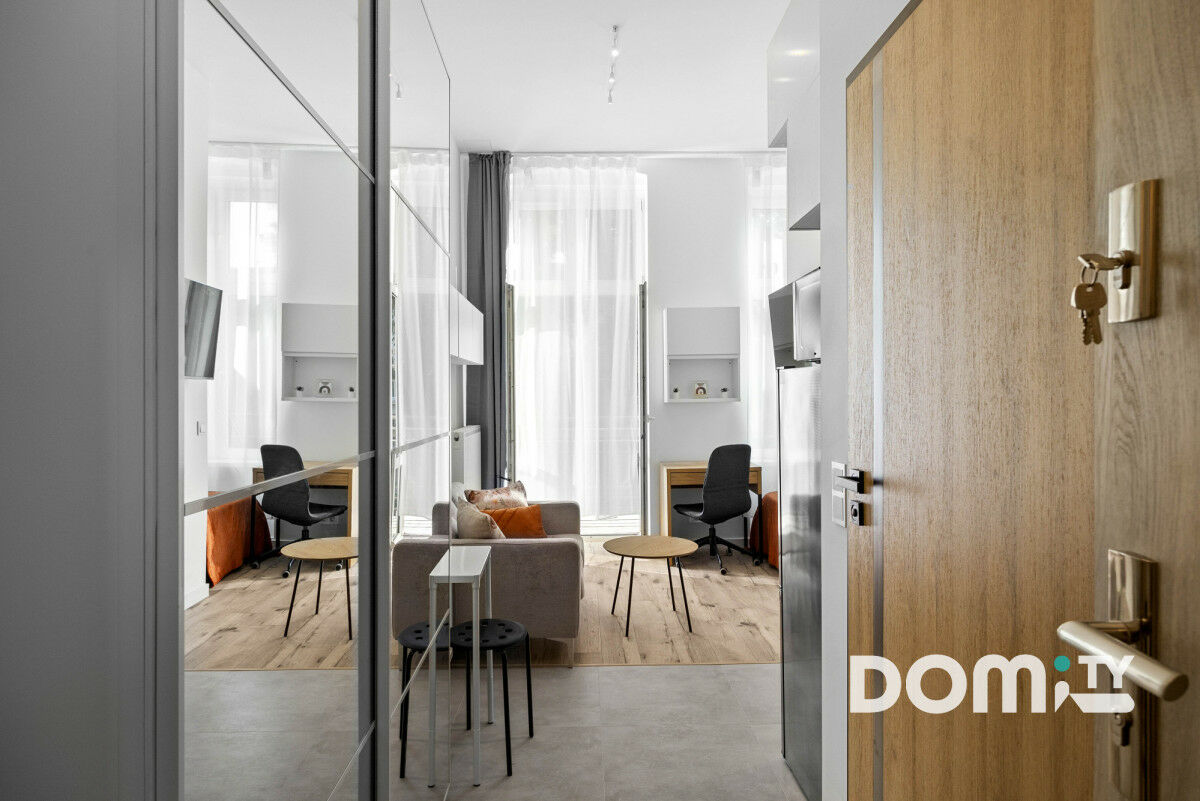 Ten apartament o powierzchni ~22 m² to miejsce, które łączy w sobie nowoczesność z tradycją kamienicy, tworząc wyjątkową harmonię.