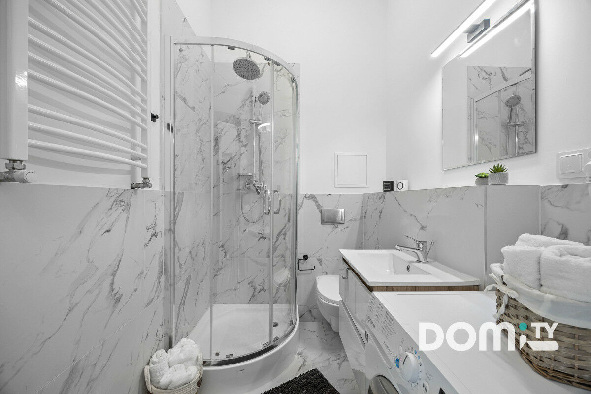 - łazienka: prysznic, umywalka, toaleta, pralka z suszarką