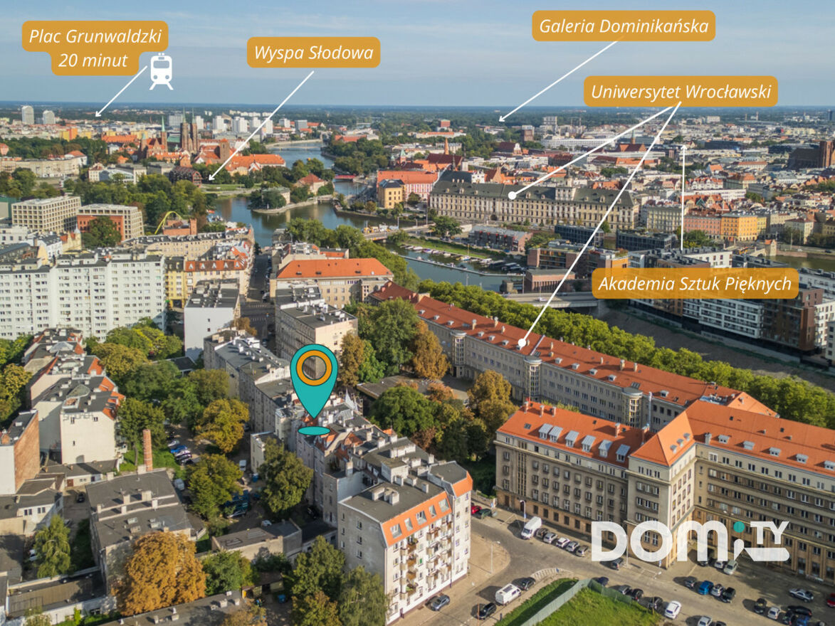 Wyjątkowy apartament zlokalizowany na I piętrze, w zadbanej kamienicy, naprzeciwko Uniwersytetu Wrocławskiego (Wydział Fizyki i Astronomii), przy bulwarze nadodrzańskim. Idealna lokalizacja żeby być w centrum miasta ale nadal cieszyć się ciszą, spokojem i pięknymi terenami spacerowymi wkoło. Bliskość Rynku, Wyspy Słodowej, Uniwersytetu Wrocławskiego, komunikacji tramwajowej sprawia, że w zasięgu ręki mamy wszystko co we Wrocławiu najlepsze.
