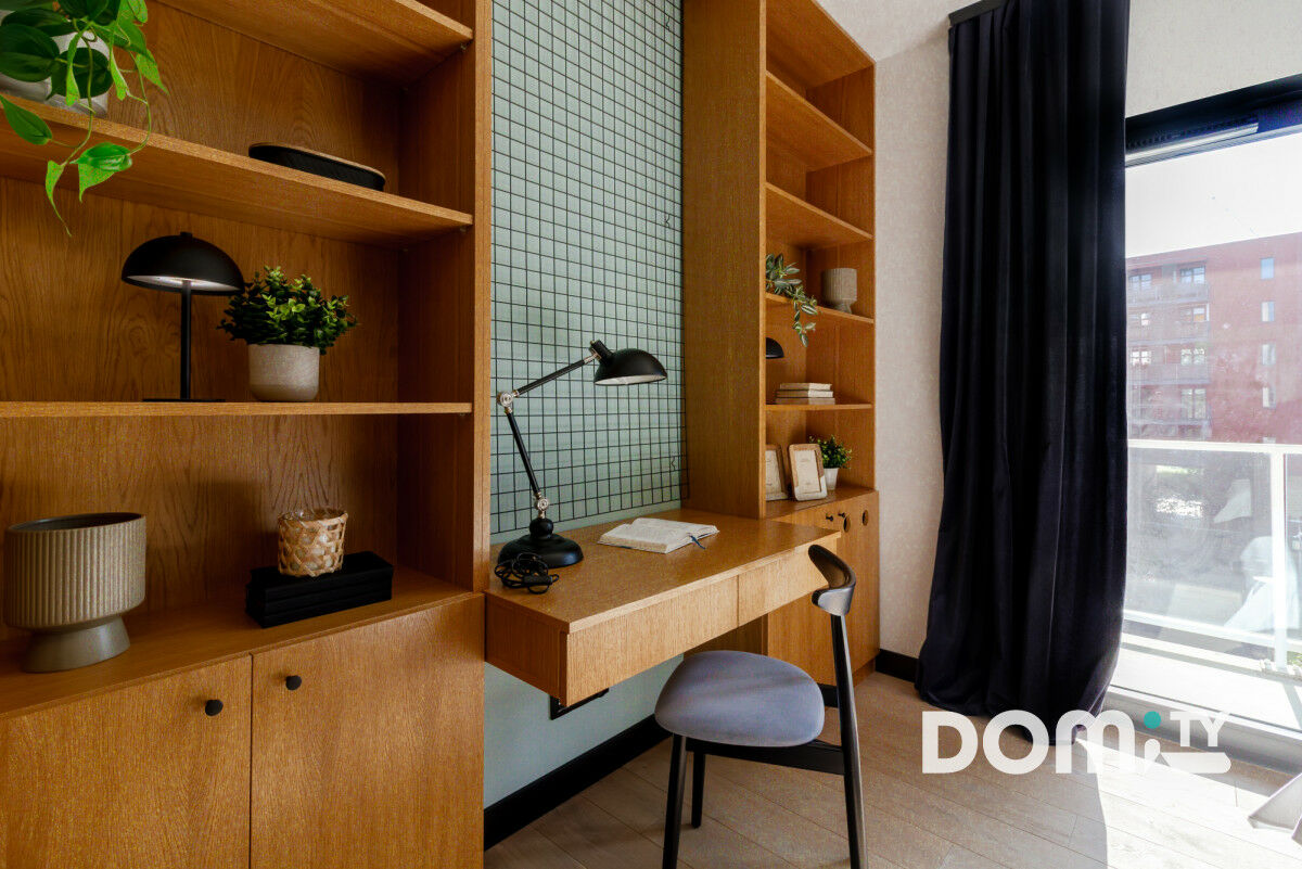 Mieszkanie wykończone z najwyższej jakości materiałów: meble drewniane na wymiar, drewniane podłogi, nowoczesne grzejniki, stylowe wykończenie, wysokiej jakości armatura łazienkowa i sprzęty użytkowe.