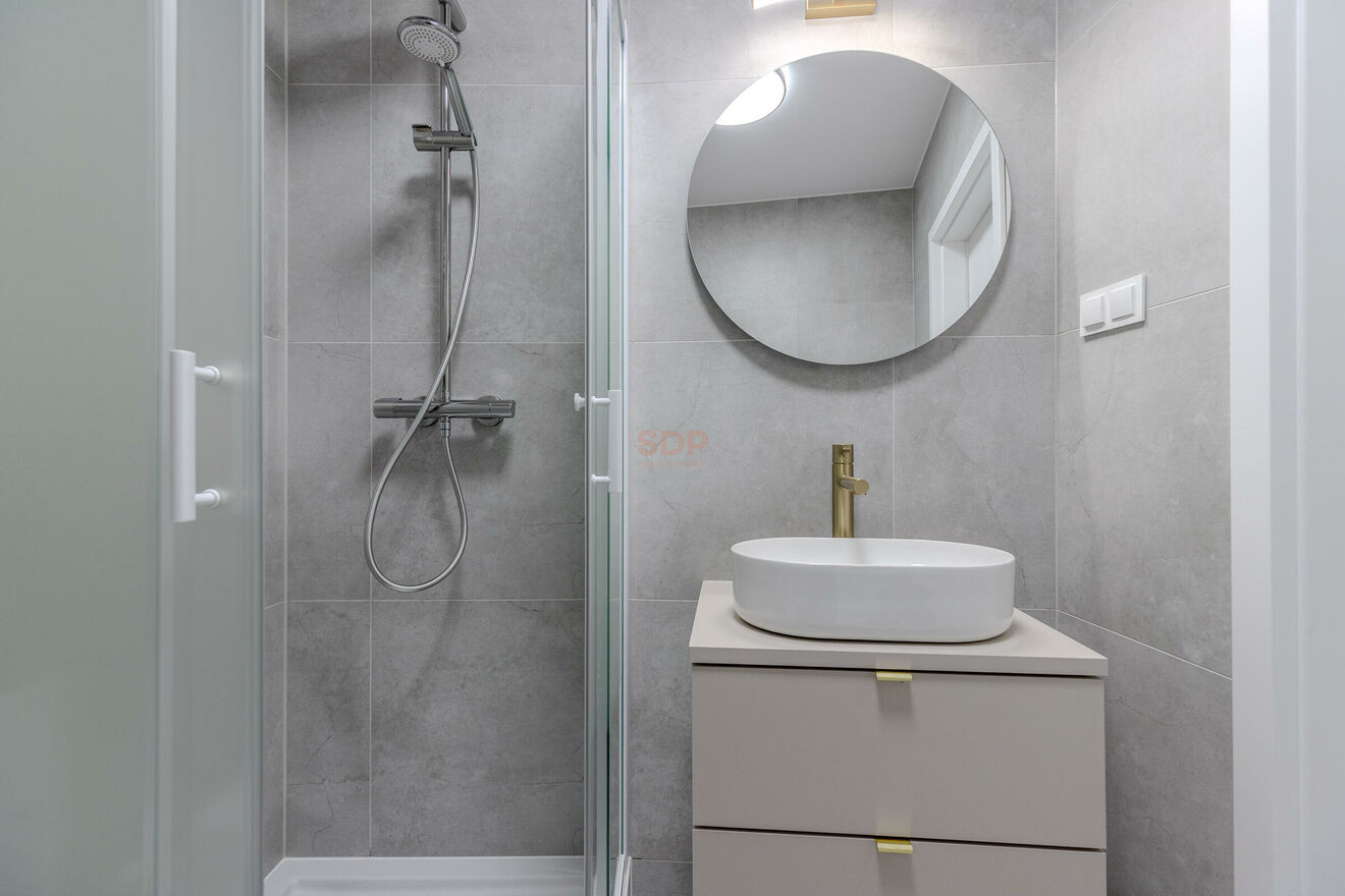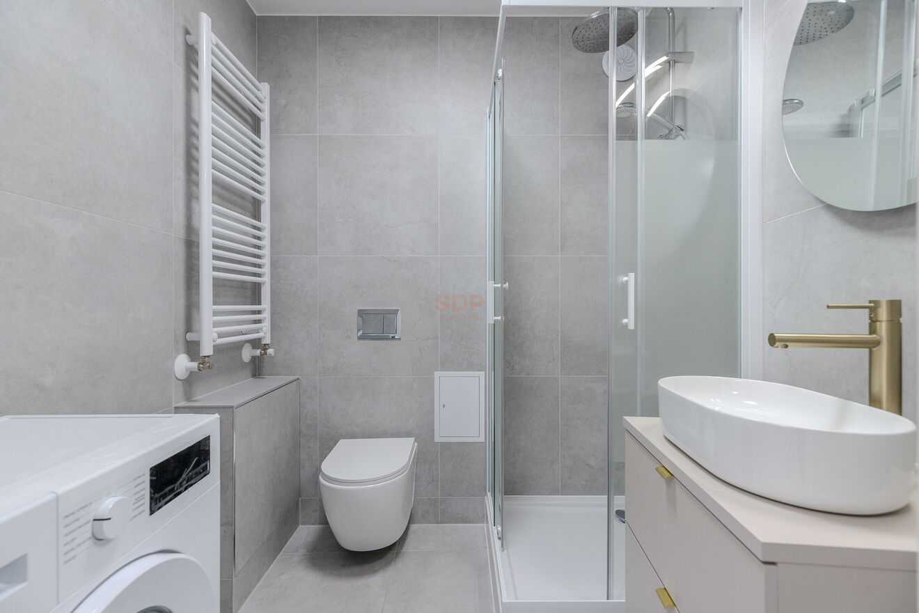 -Łazienka z nowoczesnym prysznicem,