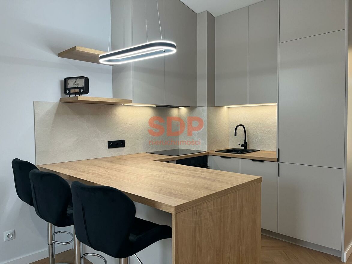 Zabudowa kuchenna oraz meble w łazience zostały wykonane na wymiar przez stolarza, co gwarantuje wysoką jakość oraz maksymalne wykorzystanie przestrzeni. W przedpokoju znajduje się duża, pojemna szafa w zabudowie.