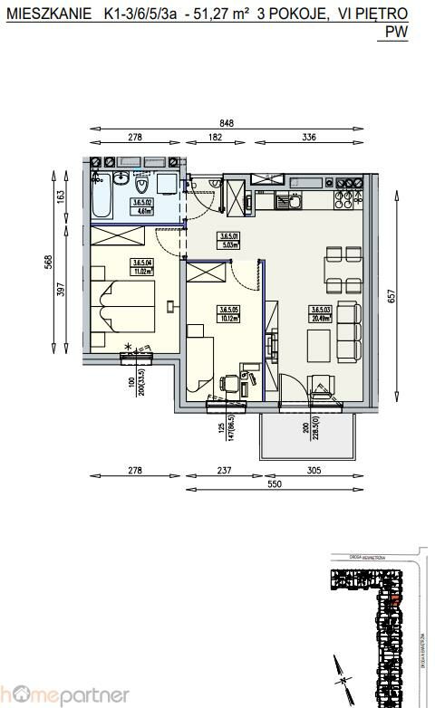 Na sprzedaż 3-pokojowe mieszkanie o powierzchni 51,27 m2 znajdujące się na 6 piętrze inwestycji deweloperskiej na Krzykach, w okolicach Alei Karkonoskiej.