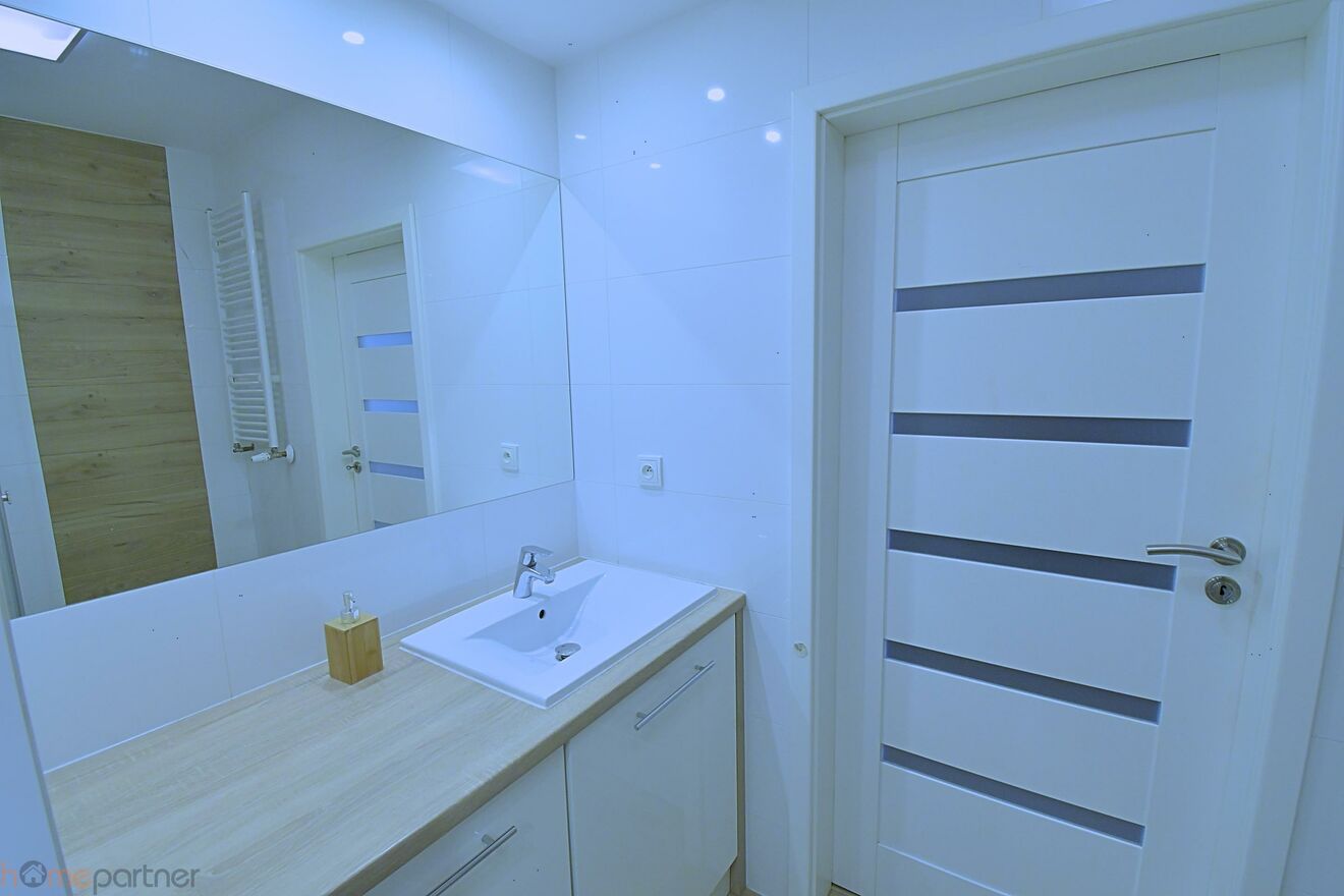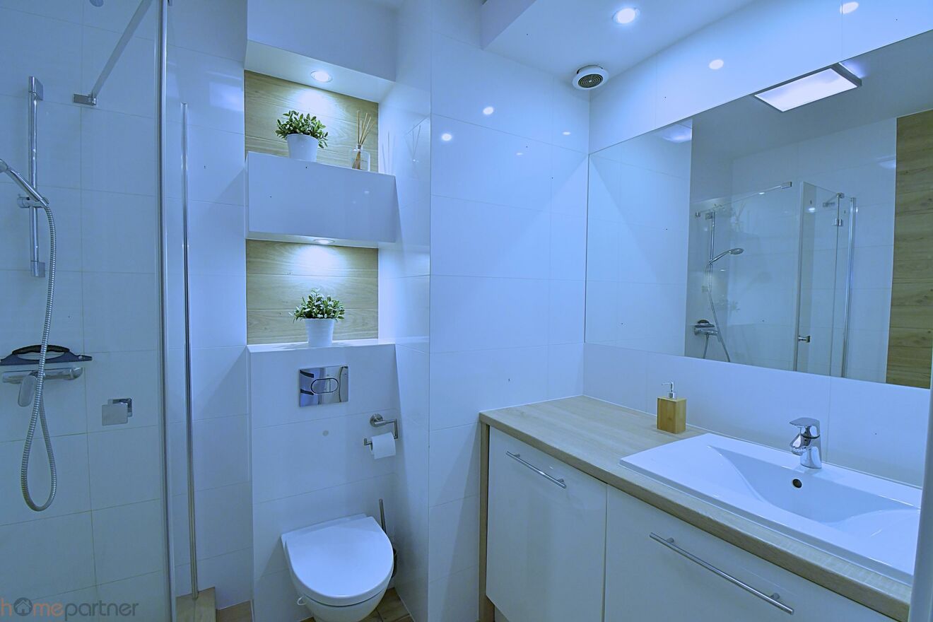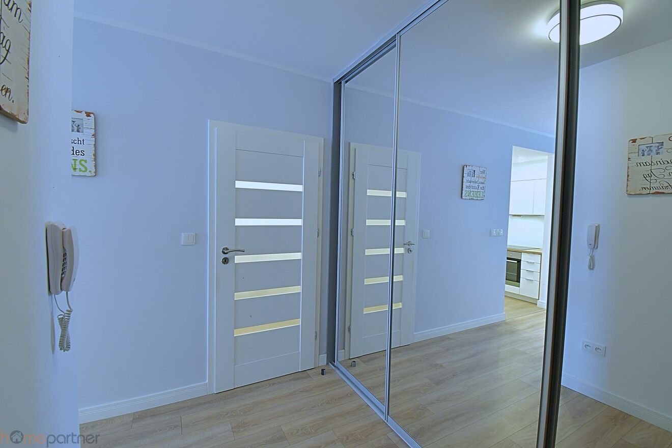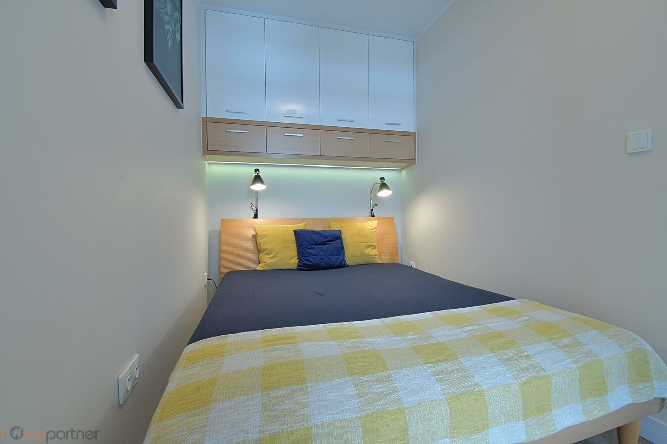 The apartment is furnished and modernly arranged in a modern style, finished with high-class materials. The kitchenette is equipped with a fridge-freezer, induction hob, oven, hood and dishwasher. Bathroom with shower equipped with a built-in wardrobe, washing machine included. There is a double bed in the bedroom. The living room is fully equipped: chest of drawers, sofa, coffee table, table.