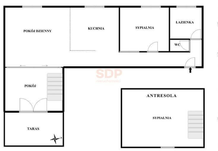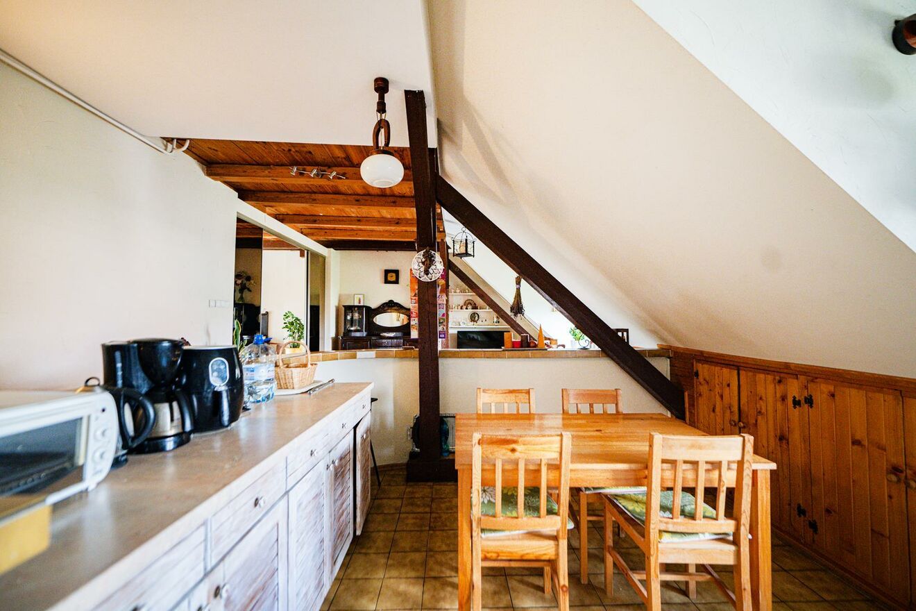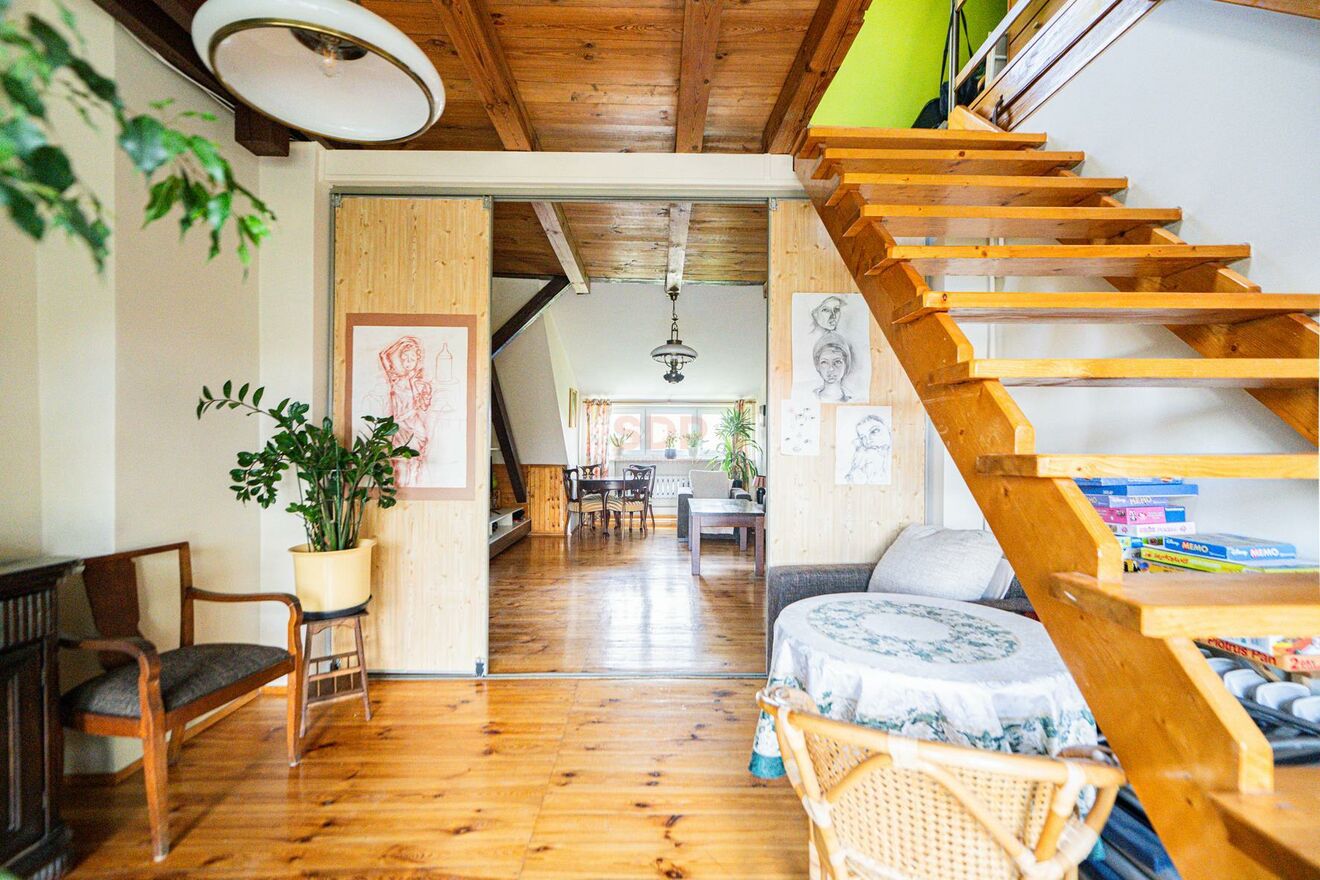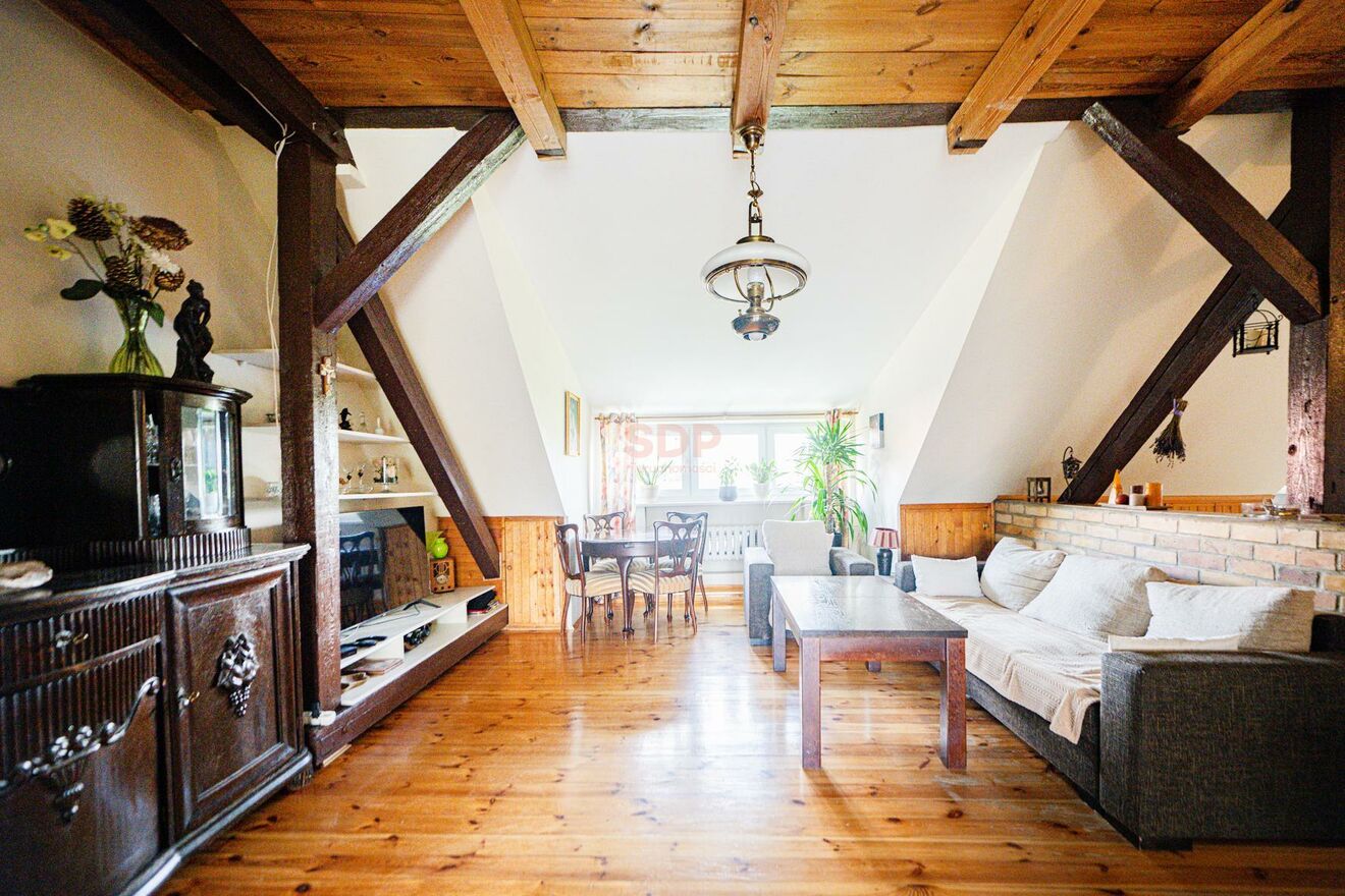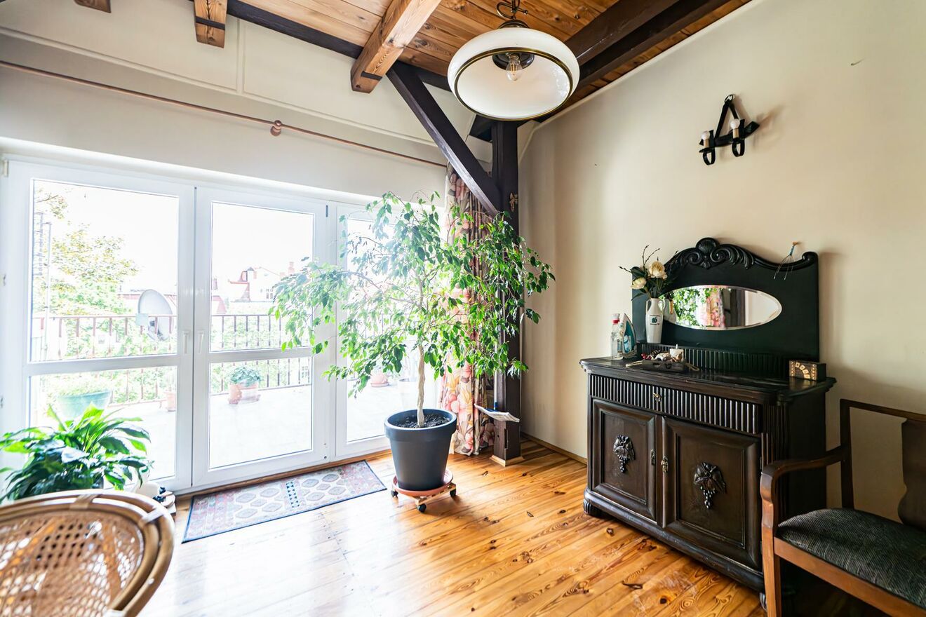 Antresola widoczna na zdjęciach i rzucie nie jest wliczona w metraż w księdze wieczystej. Rzeczywista powierzchnia jest więc o około 15m2 większa.