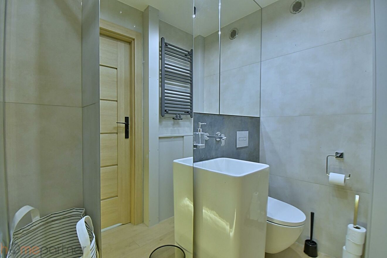 Mieszkanie jest umeblowane i urządzone w nowoczesnym stylu z wykorzystaniem materiałów wyższej jakości. Kuchnia w zabudowie wyposażona w dużą lodówko-zamrażarkę, płytę indukcyjną, piekarnik, okap i zmywarkę 60 cm. Łazienka z natryskiem, pralka na wyposażeniu. W pokoju szafa, rozkładana kanapa (140 cm) i biurko. W oknach rolety z folią refleksyjną, które chronią przed nagrzewaniem pomieszczeń.