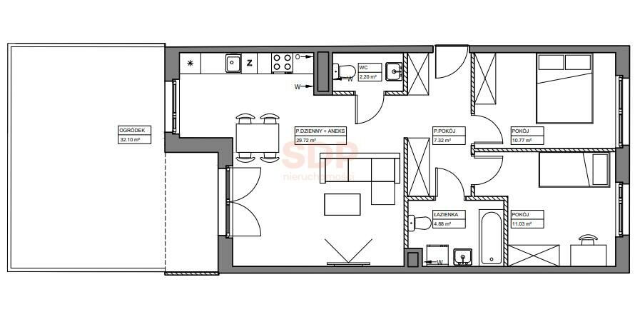 Do mieszkania przynależy również ogród o powierzchni 32,10 m2