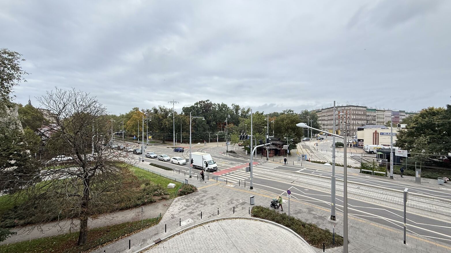 Mieszkanie znajduje się w ładnej kamienicy przy Placu Staszica, który jest bardzo dobrze skomunikowany z całym Wrocławiem. Blisko nieruchomości znajduje się Park Staszica oraz liczne sklepy, lokale gastronomiczne i usługowe. Jeszcze jedną ważną informacją jest droga dojazdowa, która kończy się dokładnie przy tej nieruchomości i dlatego korzystają oraz parkują na niej głównie lokatorzy.