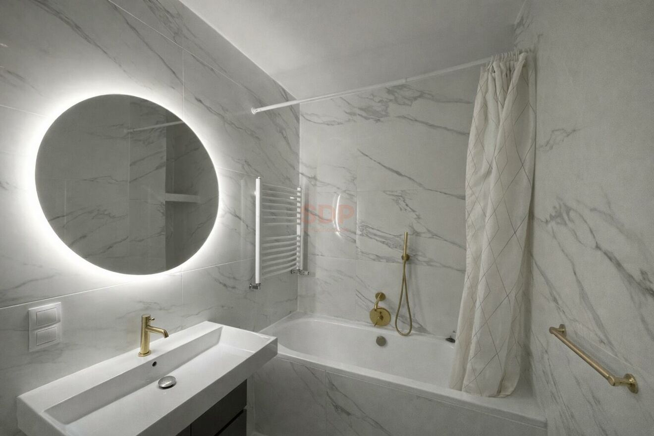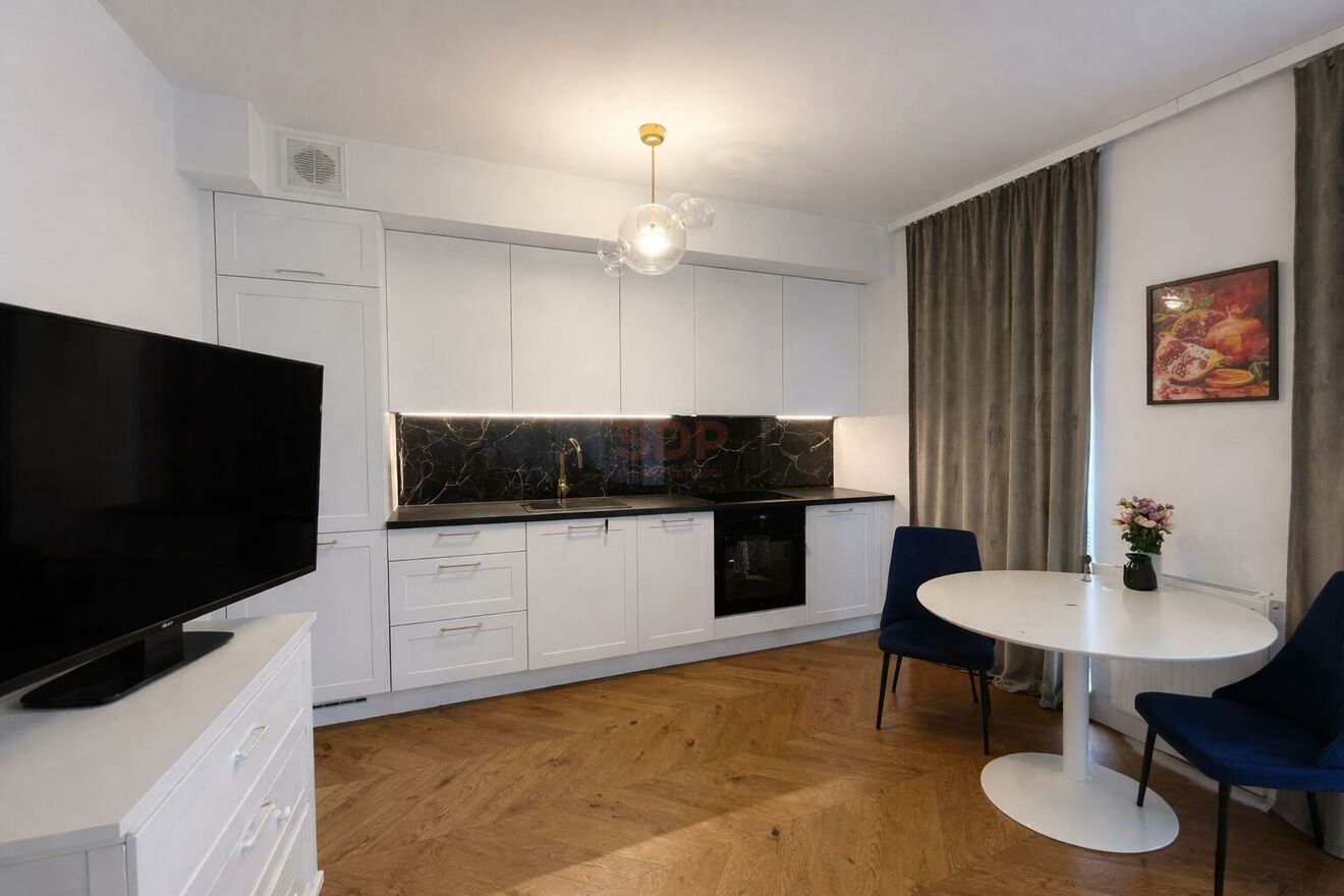 - Mieszkanie w pełni wyposażone sprzęt AGD (lodówka, płyta indukcyjna, piekarnik, zmywarka, pralka), telewizor, drewniana podłoga w jodełkę oraz meble na wymiar klasy premium