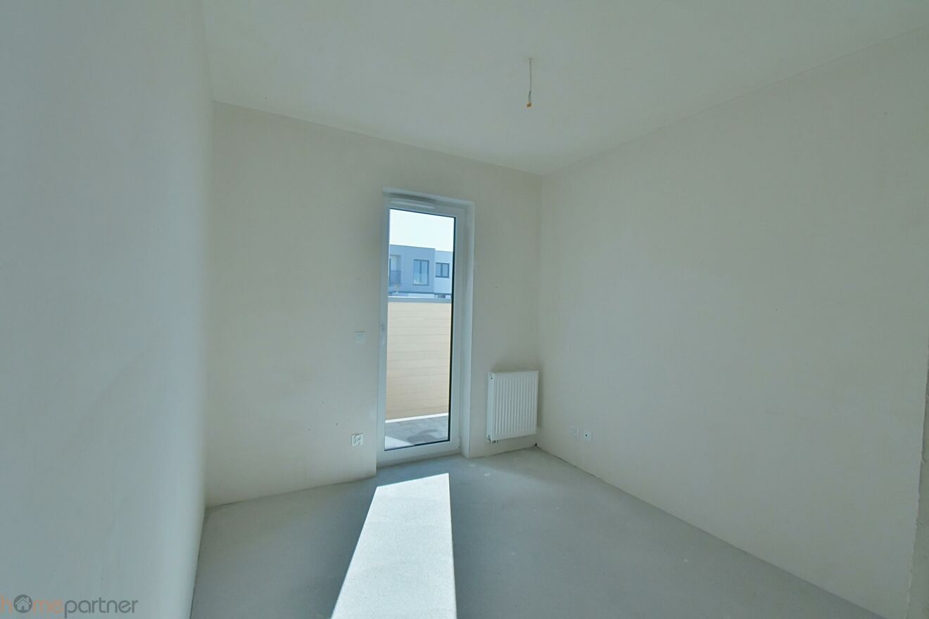 Przestronny salon z aneksem kuchennym o powierzchni 21,99 m, z wyjściem na ogród o powierzchni 68 m.