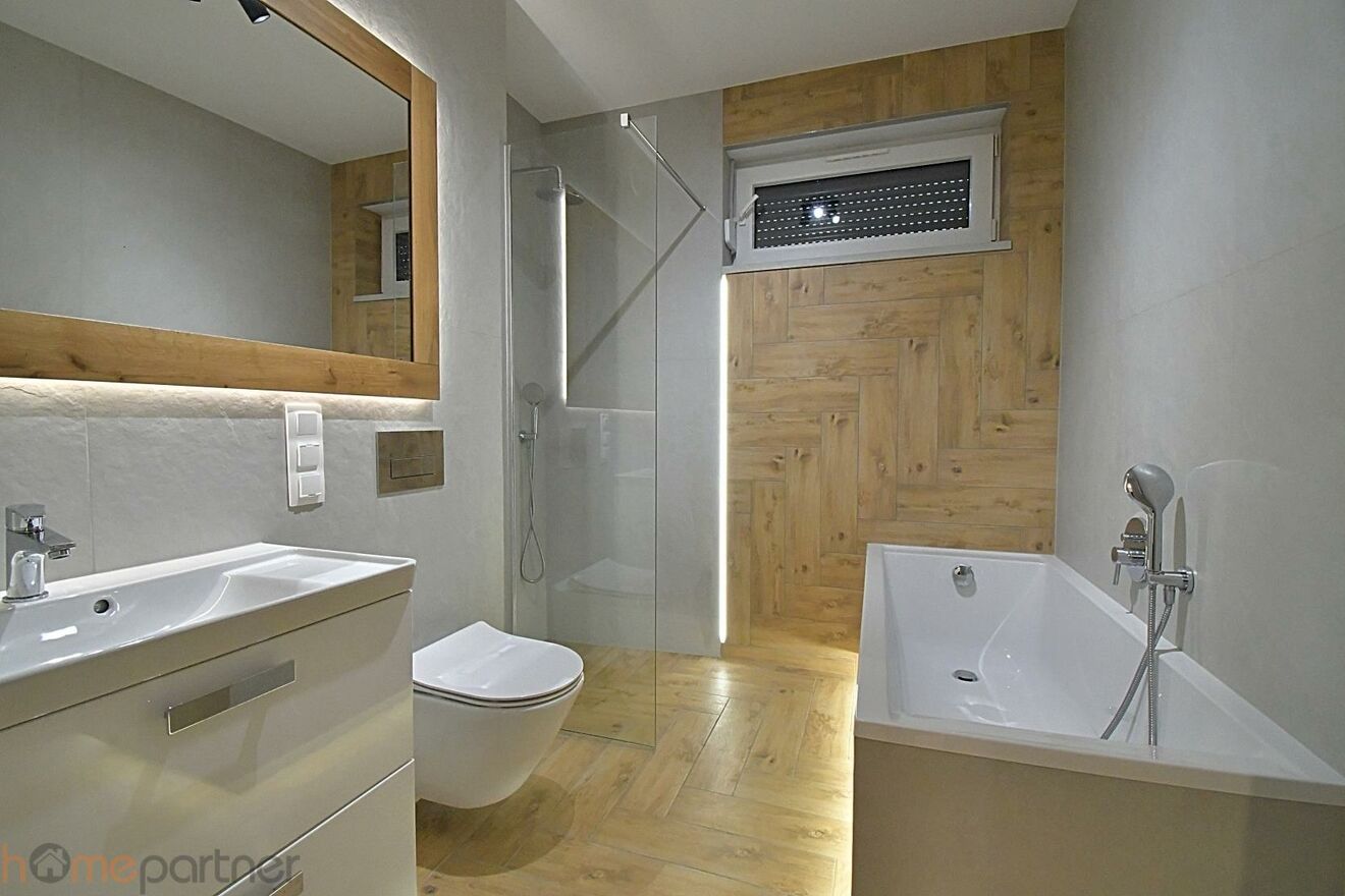 Łazienka z natryskiem oraz z wanną. Dodatkowo pomieszczenie gospodarcze z pralko-suszarką na wyposażeniu.