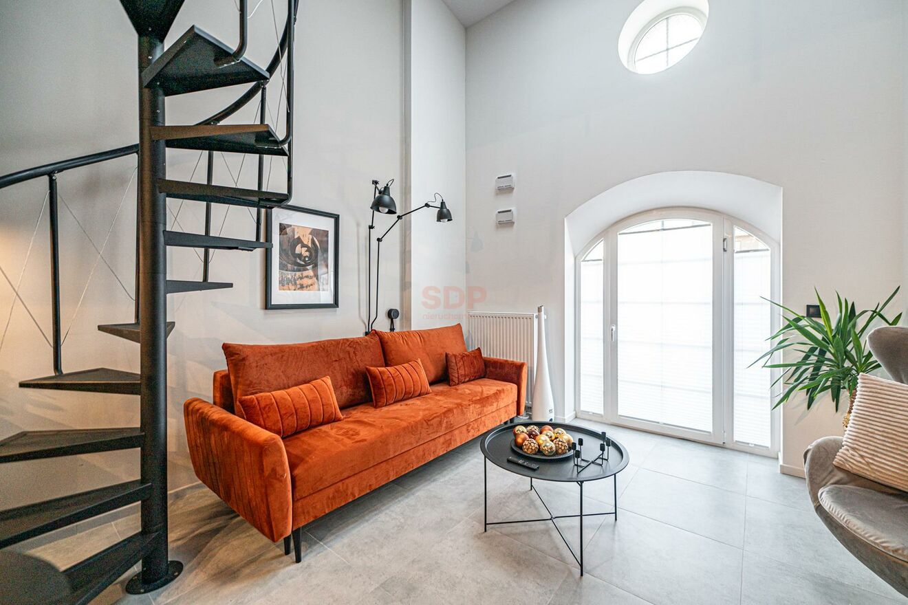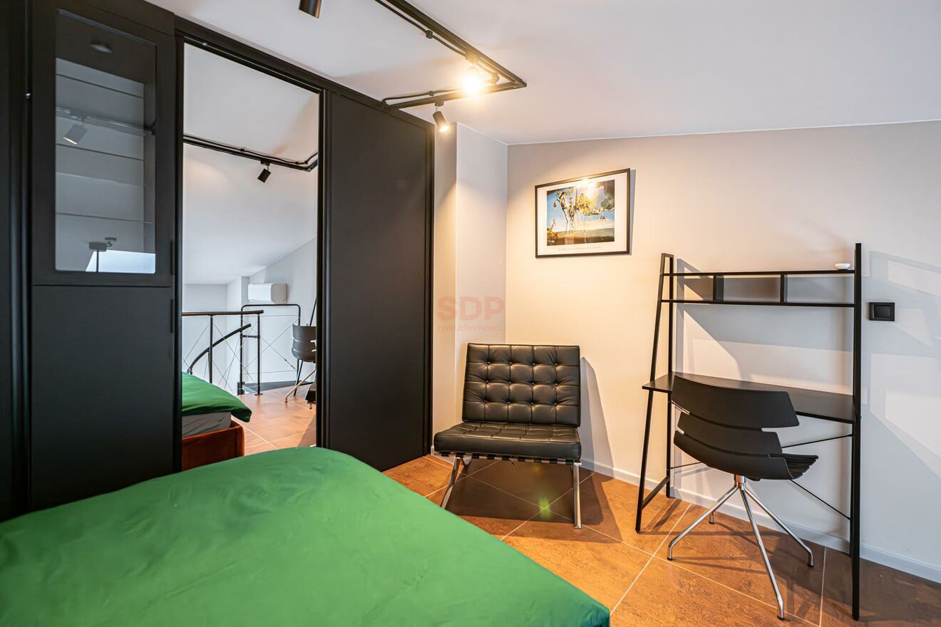 I would like to recommend for rent a 2 bedroom apartment with an area of 43m2 located in a historic multi-family building after renovation - "Różanka Młyn" city heating, building with elevator. Apartment furnished to a luxurious standard. Fully equipped and well-lit kitchen. In the living room there is a sofa with sleeping function along with a TV. On the mezzanine there is a double bed with a mattress.