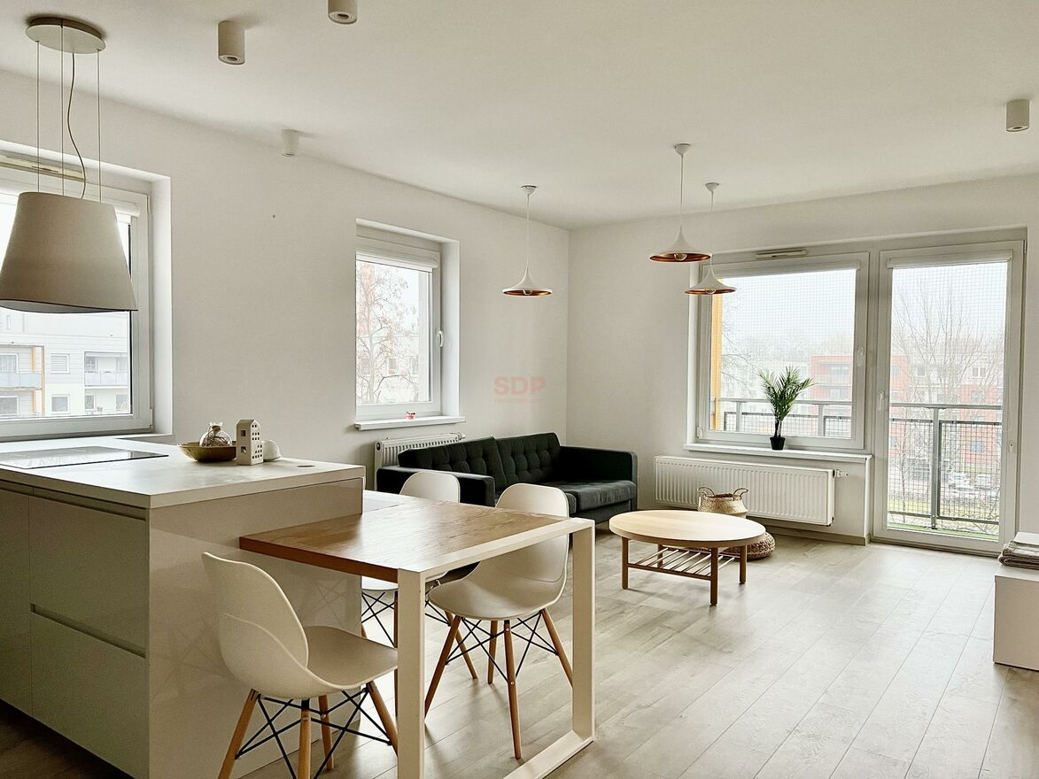 Do wynajęcia piękne mieszkanie 3-pokojowe z przestronnym salonem, balkonem, miejscem postojowym w garażu podziemnym oraz komórką lokatorską na osiedlu Olimpia Port.