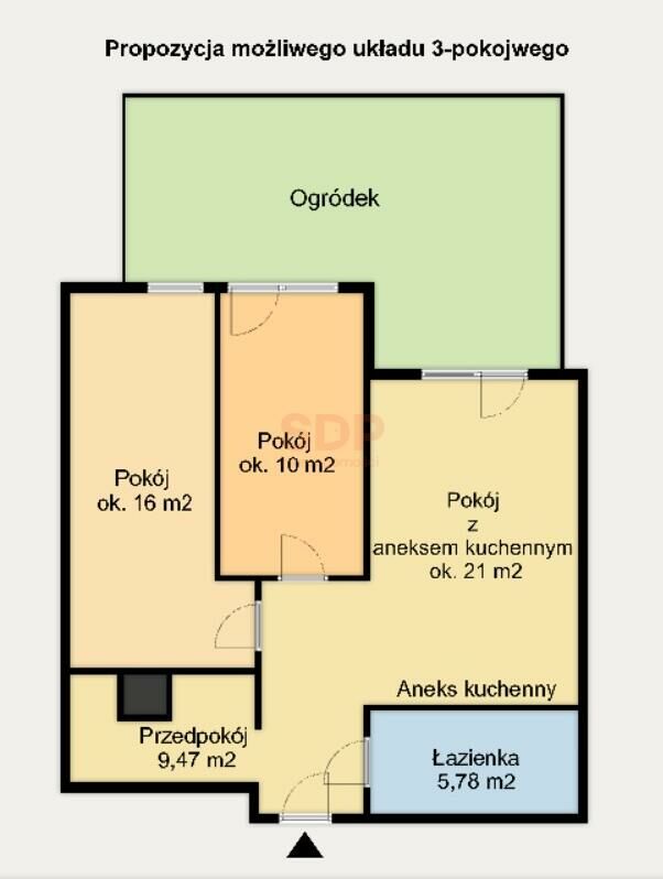 - Pokój z miejscem na aneks kuchenny - ( z możliwością podziału na dwa pokoje)