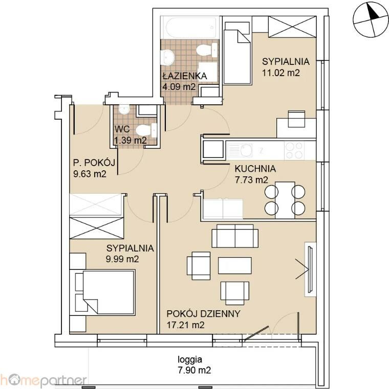 - loggia (balkon) 7,90 m2