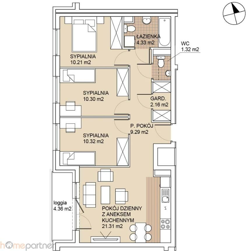 - sypialni 10,31 m2