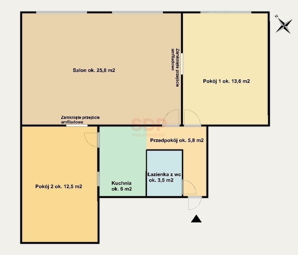 Układ pomieszczeń w mieszkaniu ok. 66,69 m2: