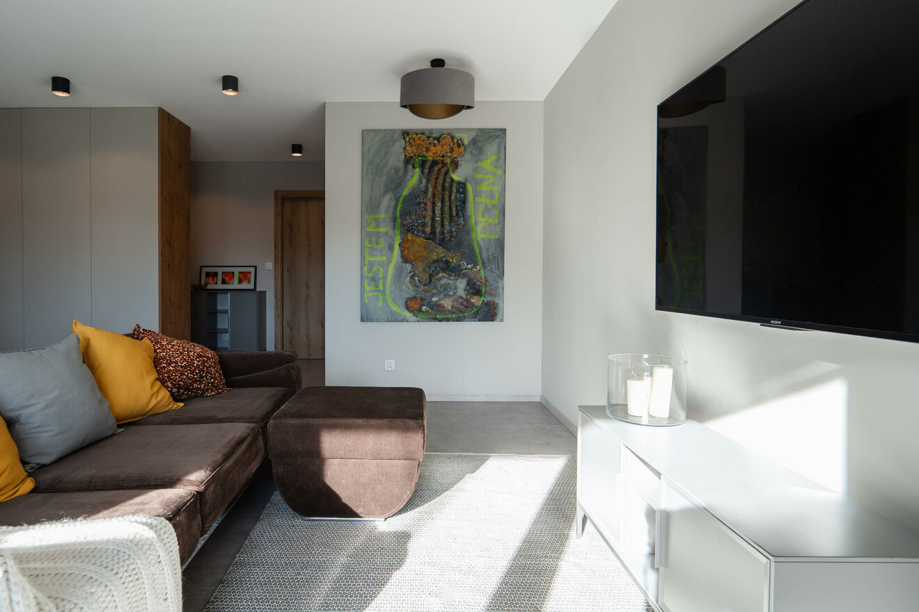 - Dwustronna szafa oddzielająca część dzienną od reszty pokoi