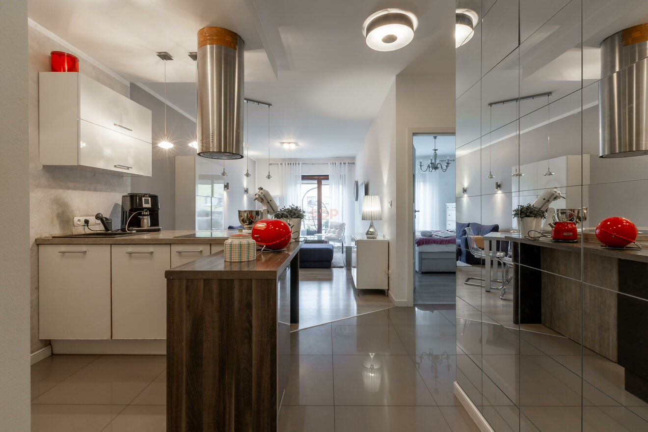 Mieszkanie wykończone w ponadczasowym stylu, z dbałością o detale i komfort codziennego użytkowania. Niewątpliwym atutem jest ogromny aneks kuchenny, który docenią miłośnicy gotowania. Wysokość pomieszczeń wynosi 2,71 m, co potęguje poczucie przestrzeni.