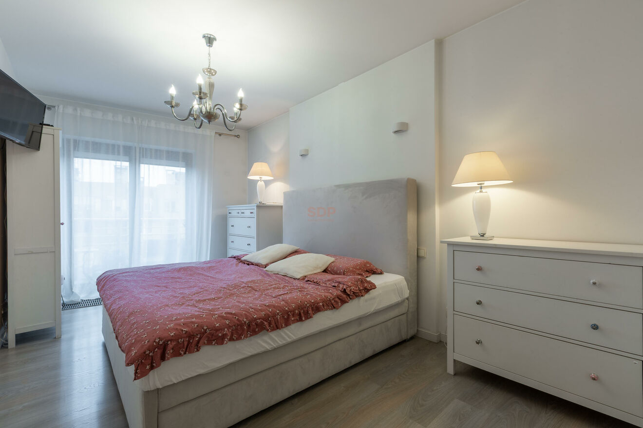 Mieszkanie ma powierzchnię 57,5 m2 i znajduje się na 5. piętrze nowoczesnego apartamentowca z 2008 roku, wyposażonego w windę.