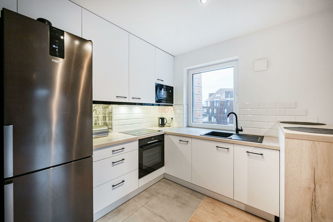 Kuchnia w pełni przemyślana, zabudowana wysokiej jakości meblami wyposażona w AGD najlepszych marek (płyta indukcyjna, pochłaniacz, piekarnik, zmywarka, chłodziarko- zamrażarka). Sypialnia z łóżkiem małżeńskim, pojemne szafy.