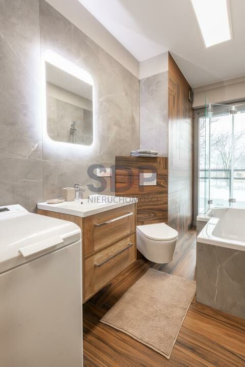 Atutem mieszkania są duże okna (również w łazience), wpuszczające wiele światła oraz automatycznie zamykane rolety.