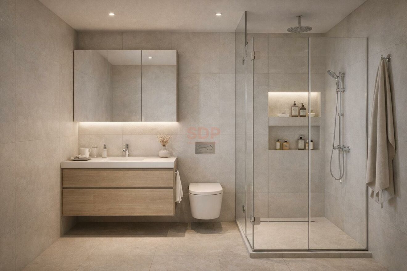 Dwie łazienki: jedna z wanną, druga z prysznicem