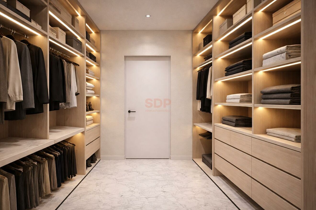 Funkcjonalny układ przedpokoju z miejscem na zabudowę