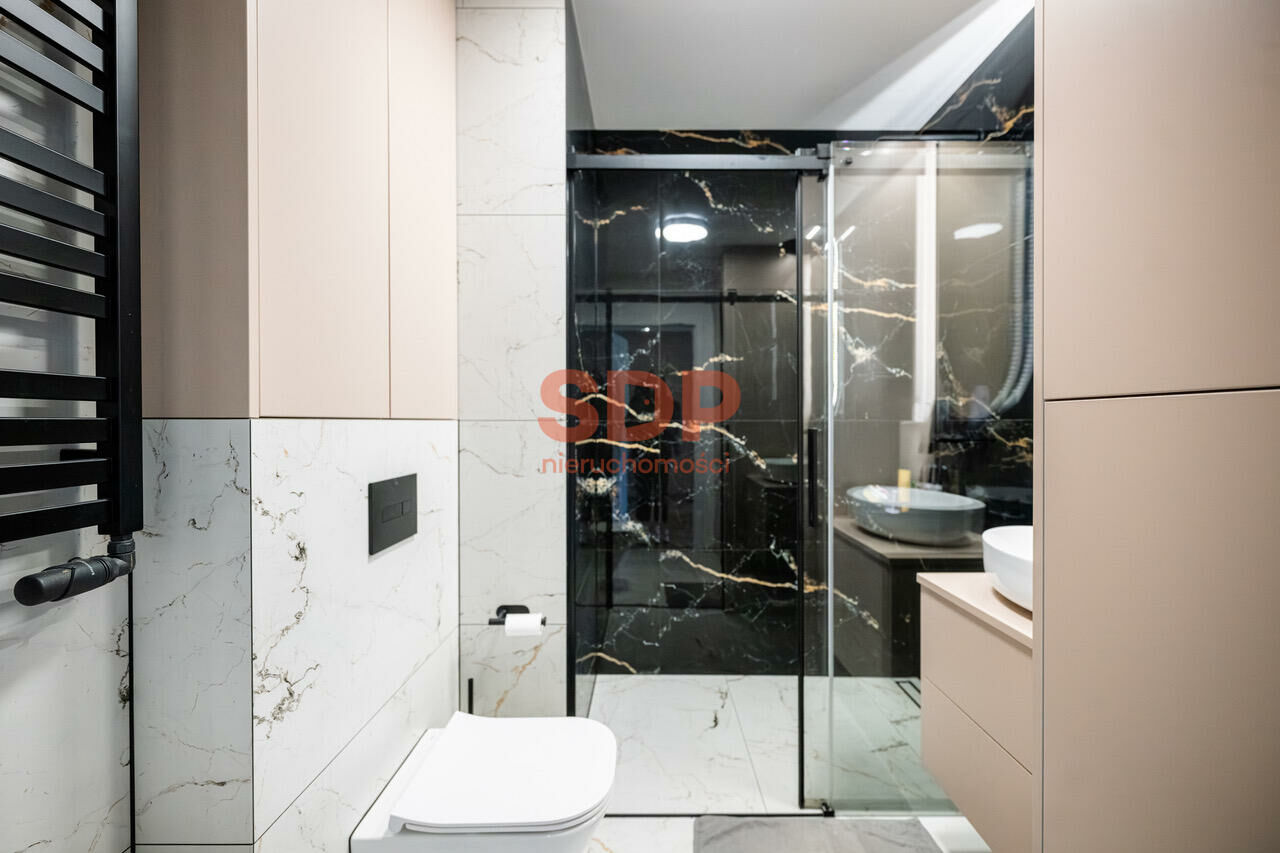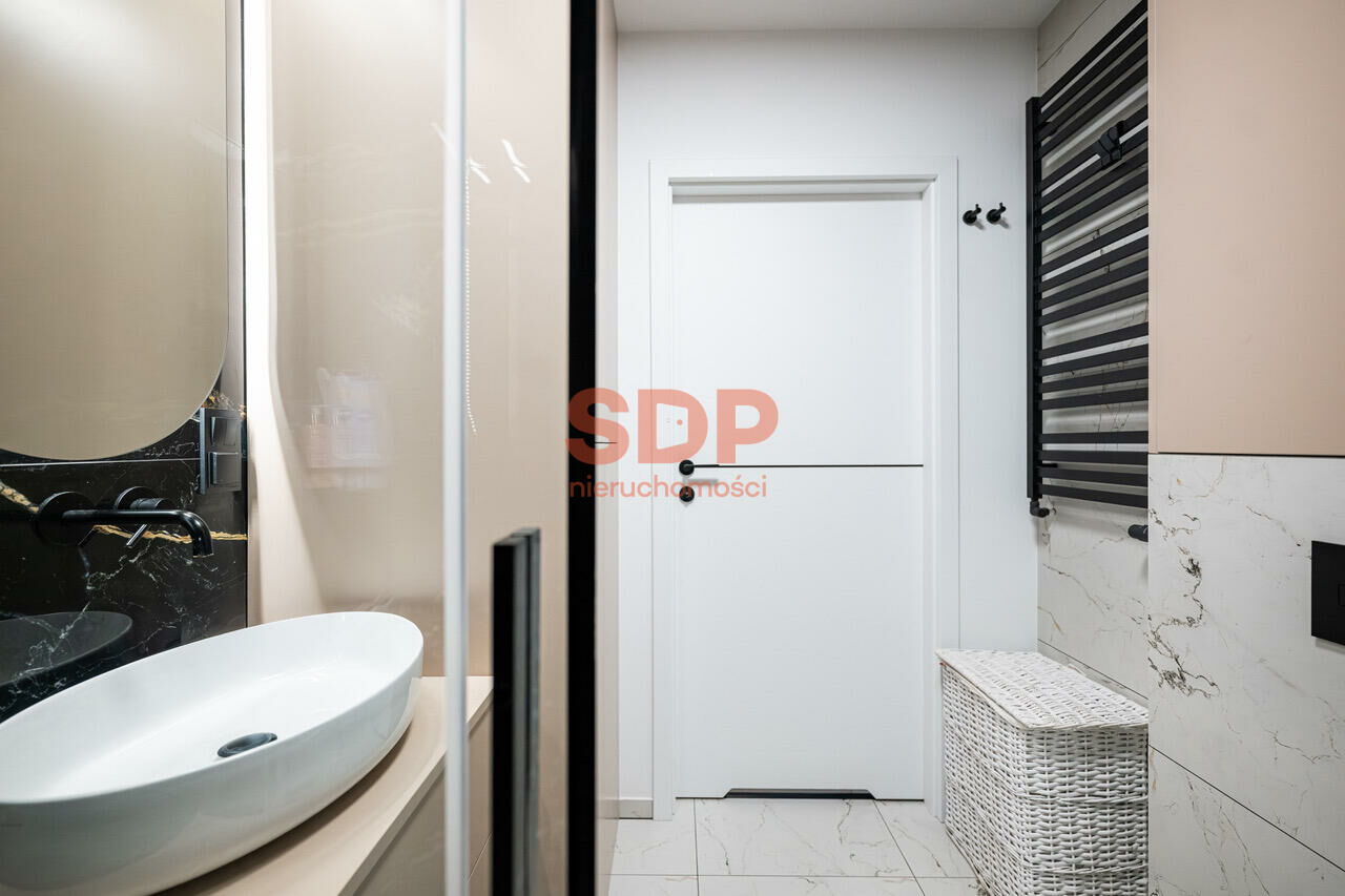 Wnętrze wykończone materiałami najwyższej jakości renomowanych firm. Komfort, przestrzeń, jasne barwy w połączeniu z kontrastującymi akcentami zapewniają ponadprzeciętny charakter pomieszczeń. Dodatkowo całość wykończona z dużą dbałością o szczegóły. Szafy w zabudowie, dużo miejsca do przechowywania.