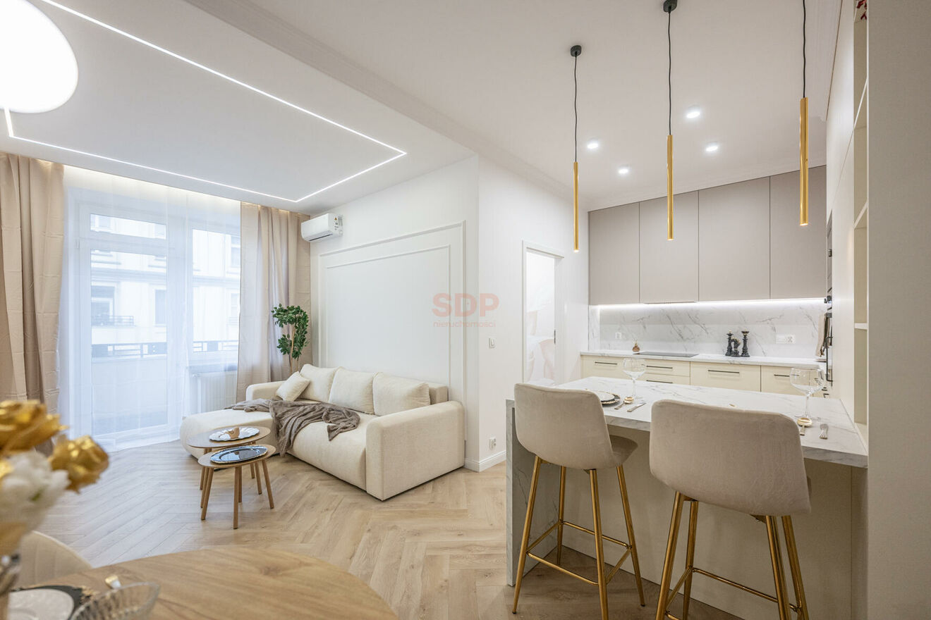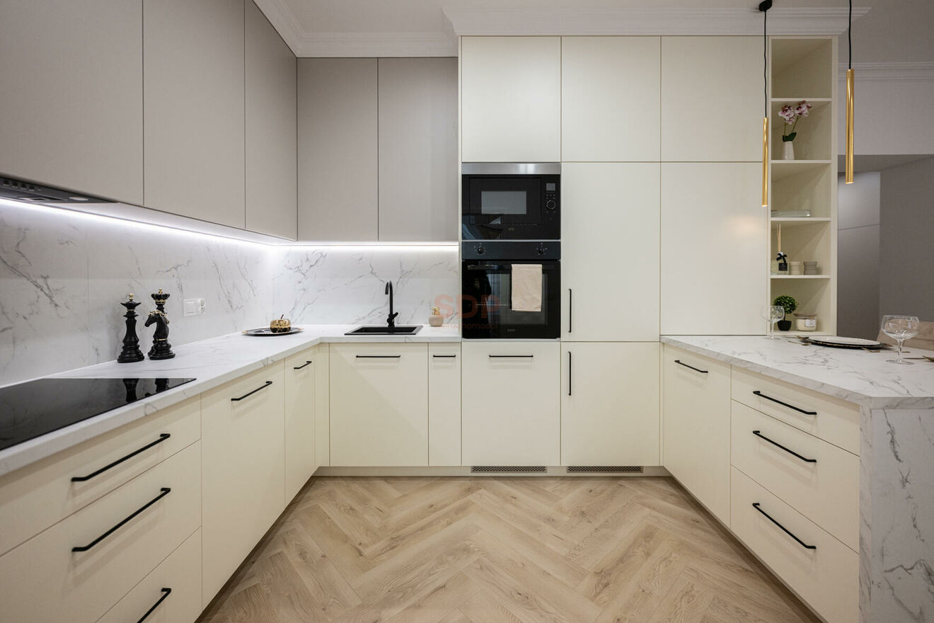 - zabudowy stolarskie na wymiar oraz pełne wyposażenie AGD (indukcja, piekarnik, duża zmywarka, mikrofalówka, okap)