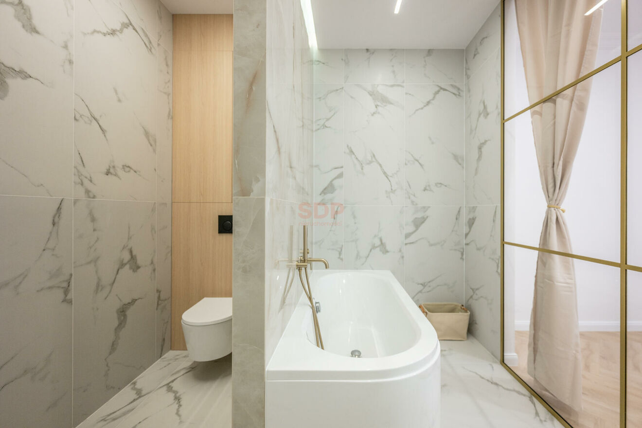- dwie łazienki (każda z toaletą): jedna ogólna z prysznicem, oraz druga w sypialni z wanną