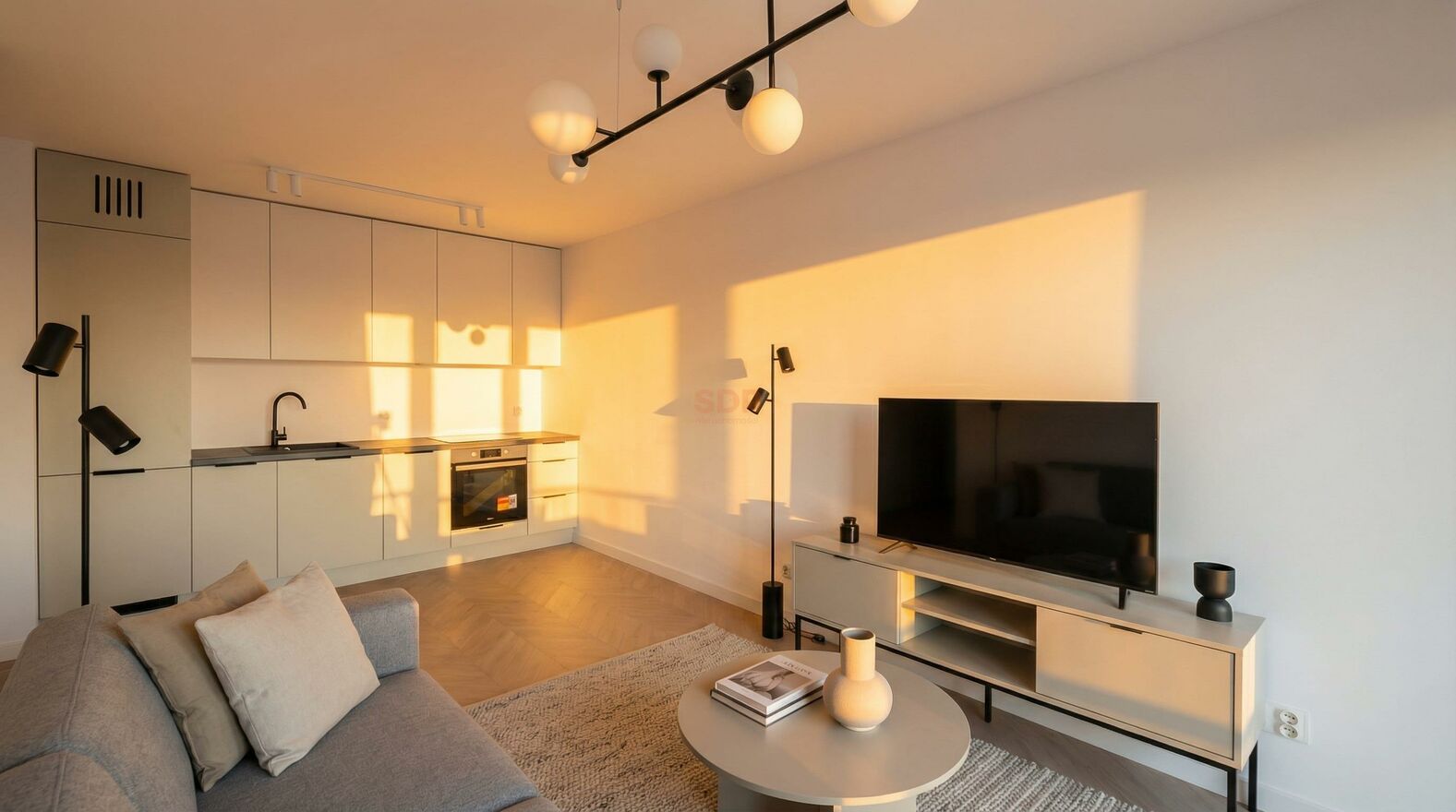 - Mieszkanie wyposażone w sprzęt RTV i AGD: piekarnik, zmywarka, płyta indukcyjna, lodówka z zamrażarką.