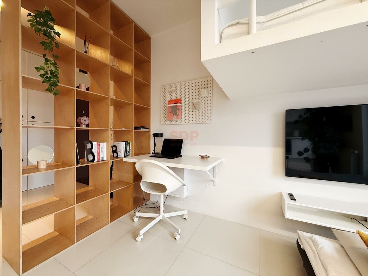 - Dobrze zagospodarowana przestrzeń - łóżko na antresoli, rozkładana kanapa, dużo miejsc do przechowywania