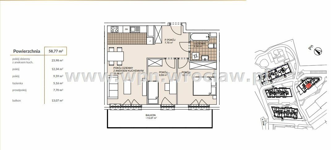 Mieszkanie o powierzchni 58.77m 2 składa się z: