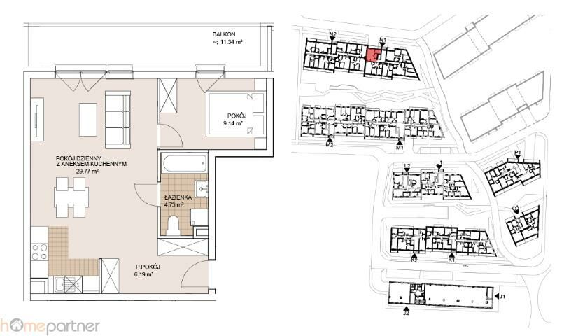 Do mieszkania przynależy duży balkon o powierzchni 11,34 m2