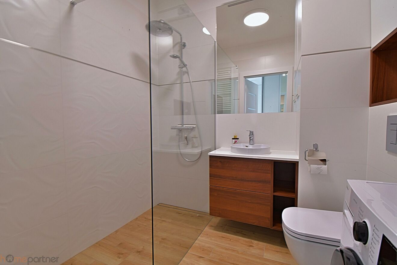The apartment is finished with high-class materials, fully furnished. Built-in kitchen equipped with a fridge-hob, induction hob, oven, hood, dishwasher. Bathroom with shower, built-in wardrobe, washing machine. The bedroom has a double bed with a new, decent mattress, a built-in wardrobe, two bedside tables, curtains. The living room is fully equipped: a sofa, a bench, a table with chairs, curtains.